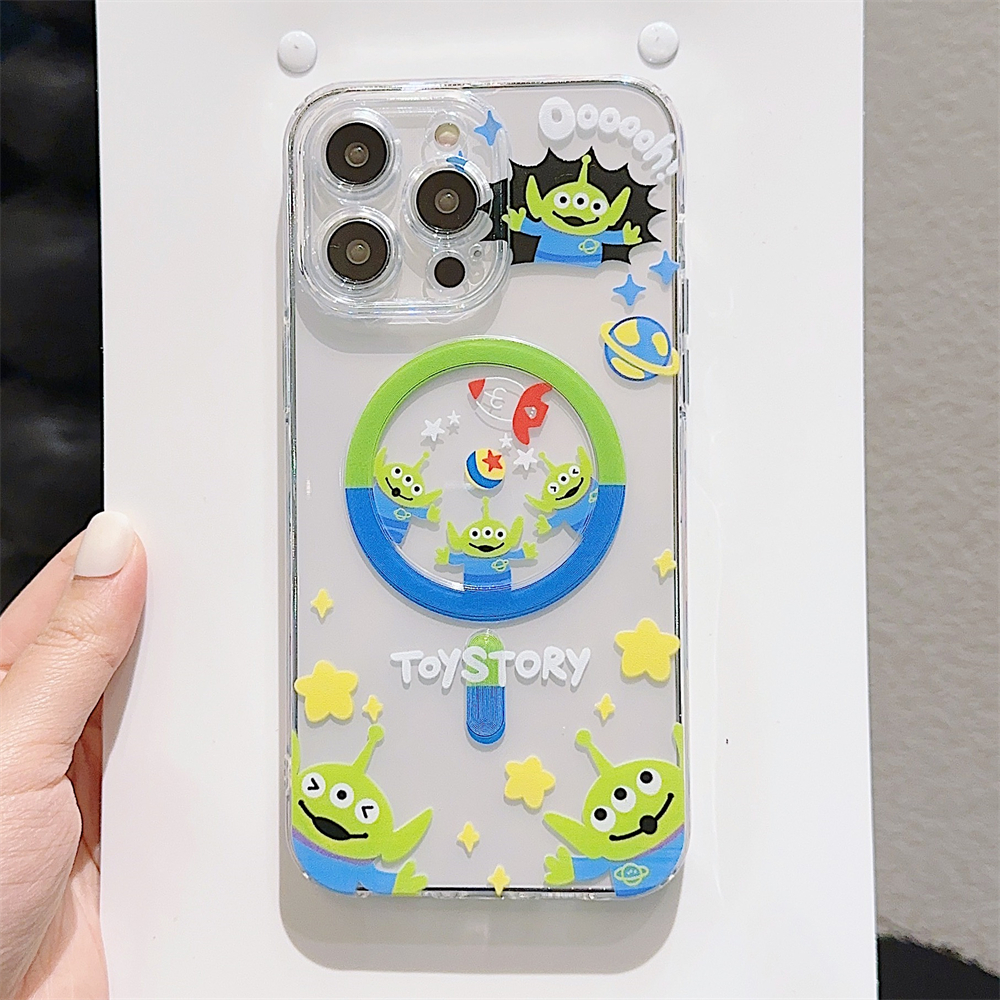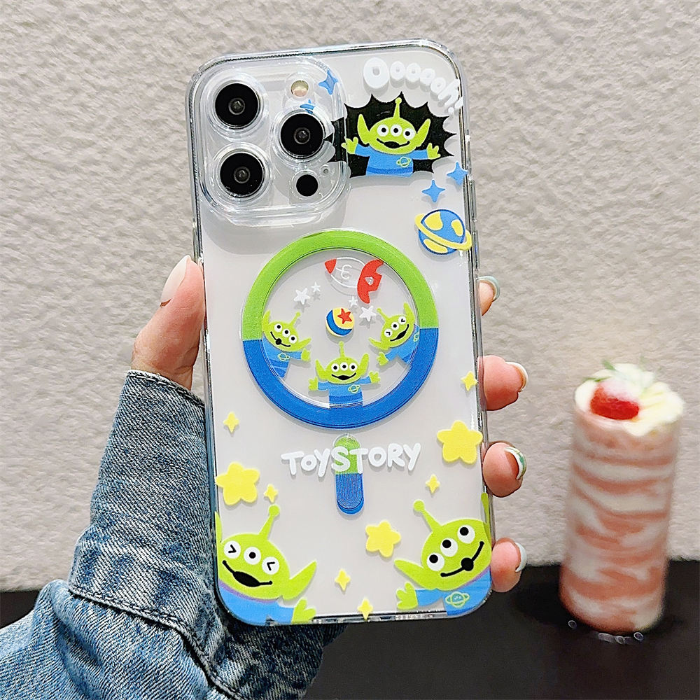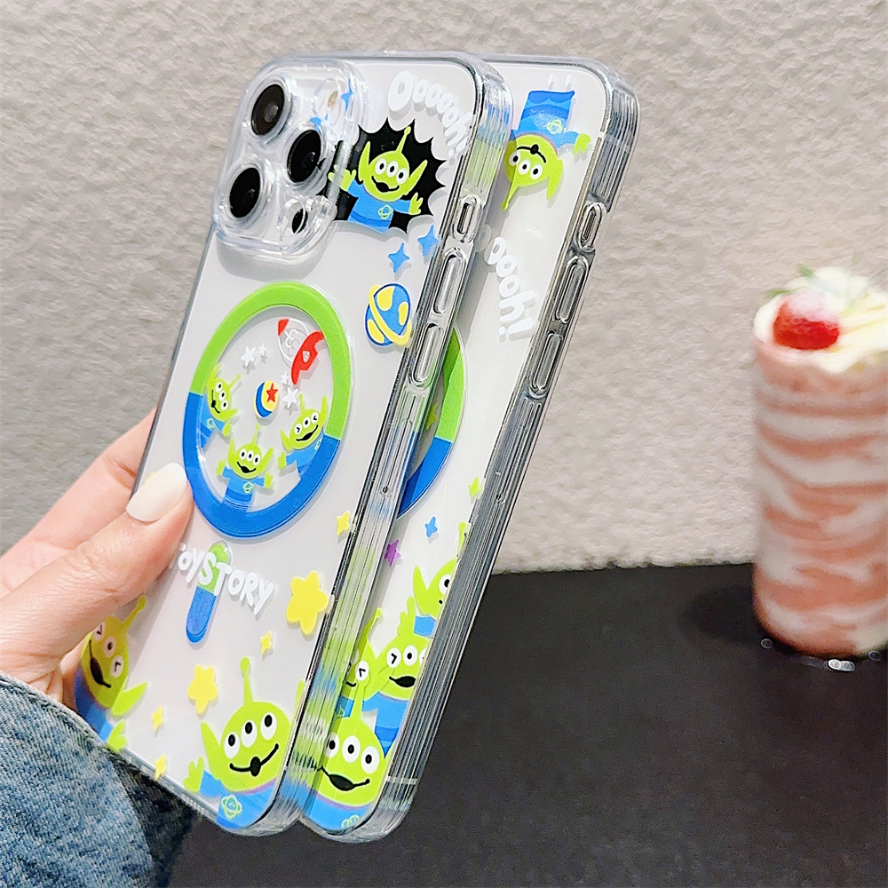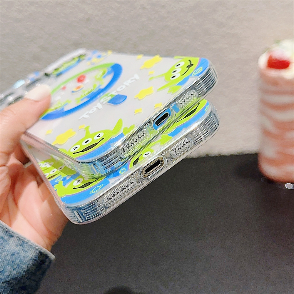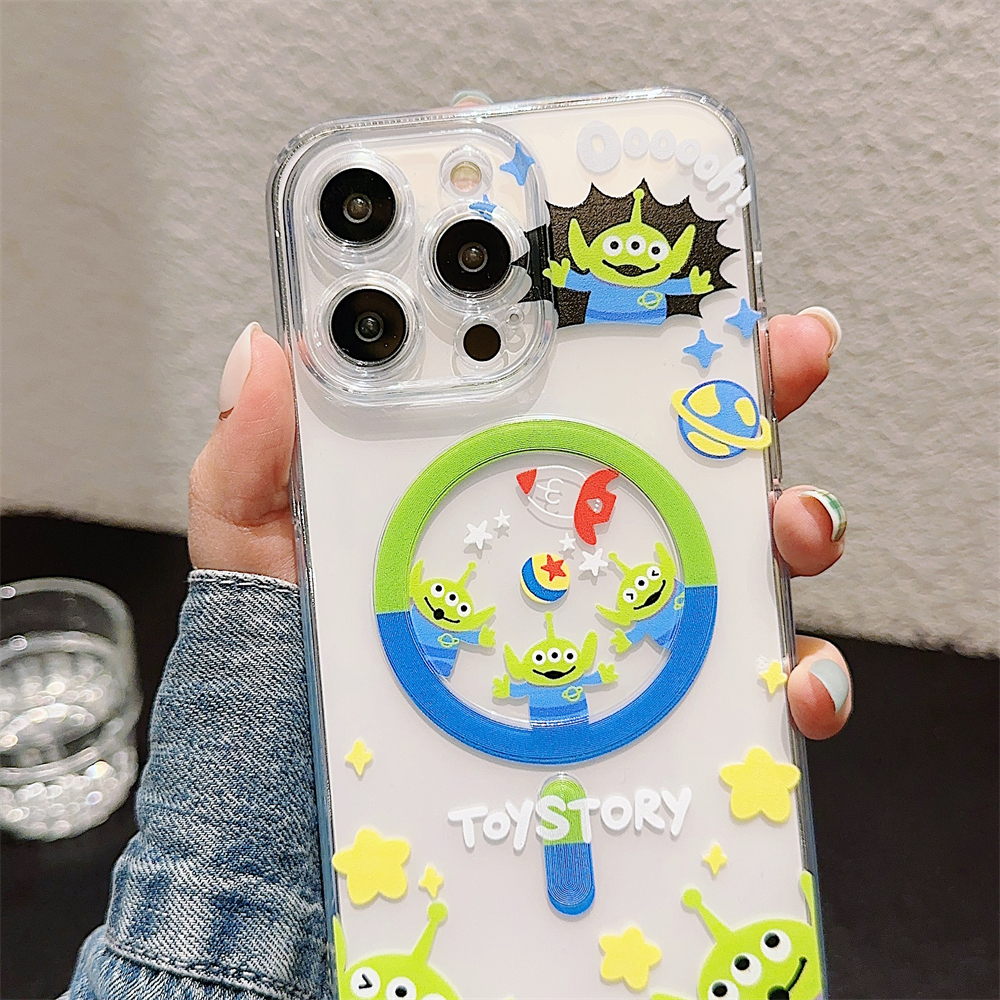 Case For iPhone 16 14 15 Pro Max Full Bump Case for iPhone 12 13 Pro Max Soft TPU Shockproof Case For iPhone 11 Cute Cartoon Toy Story Alien Case iPhone 14 Magnetic Case