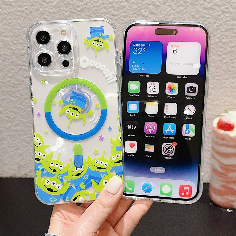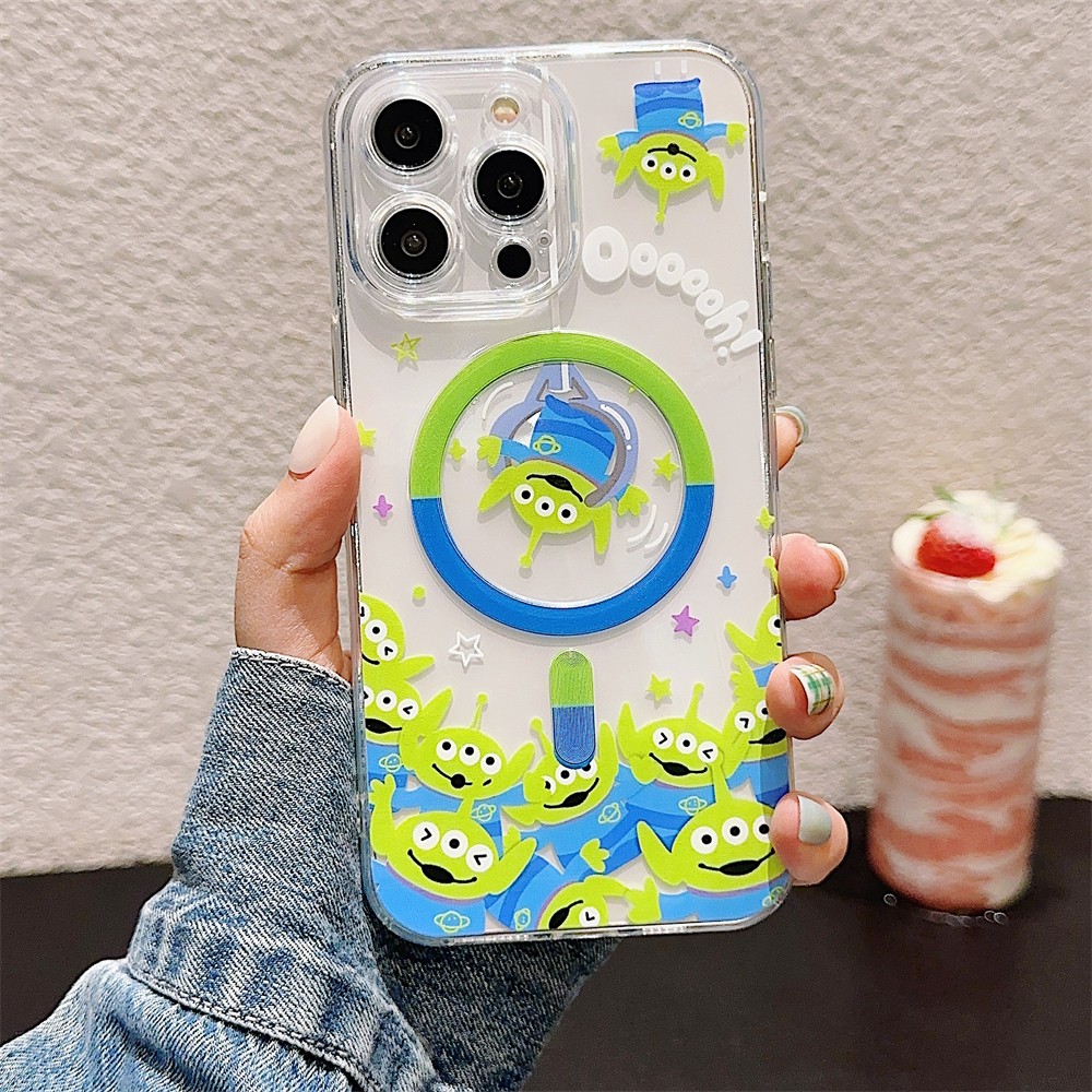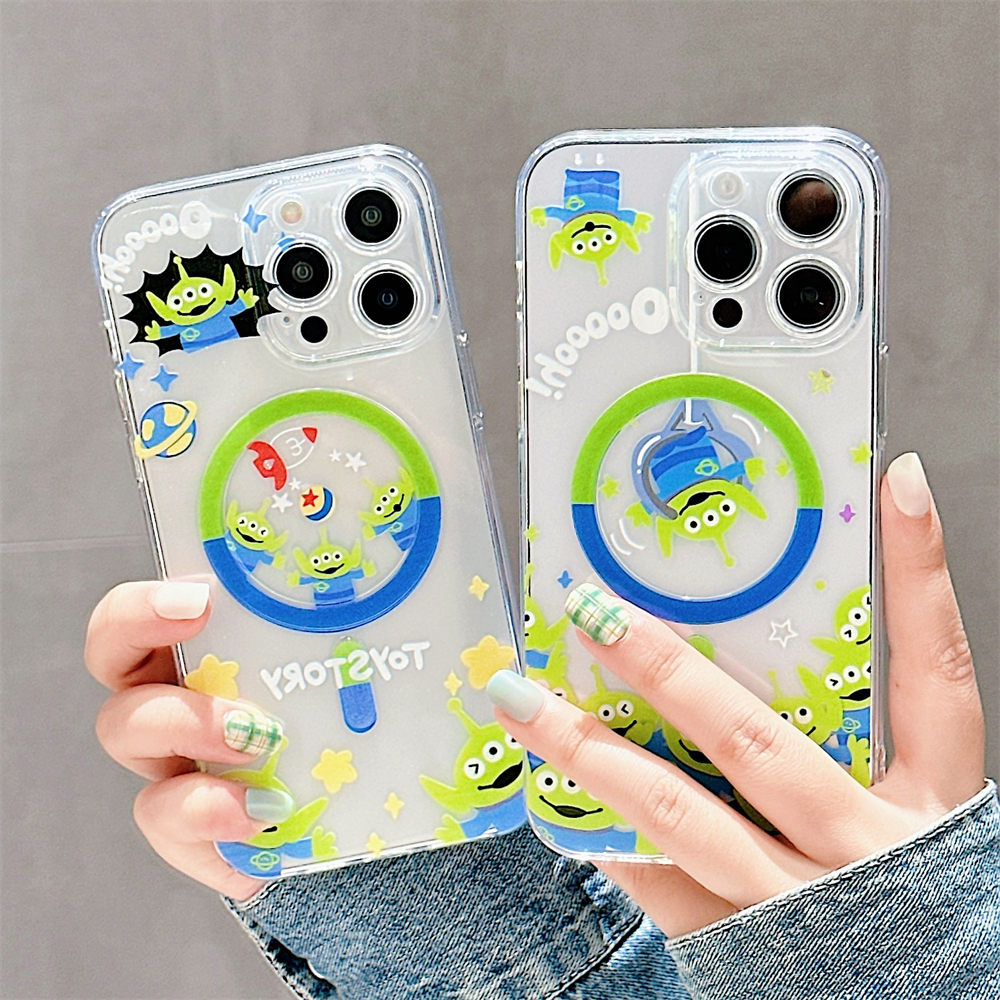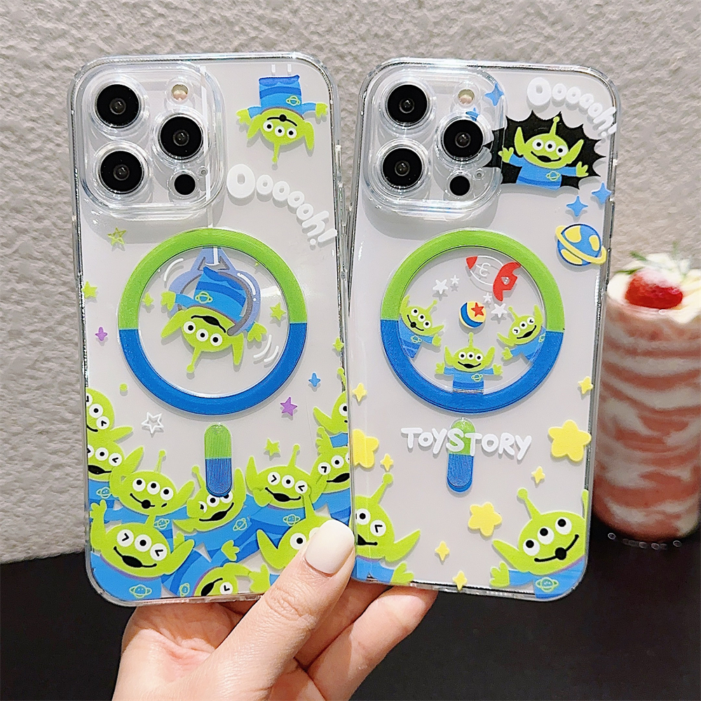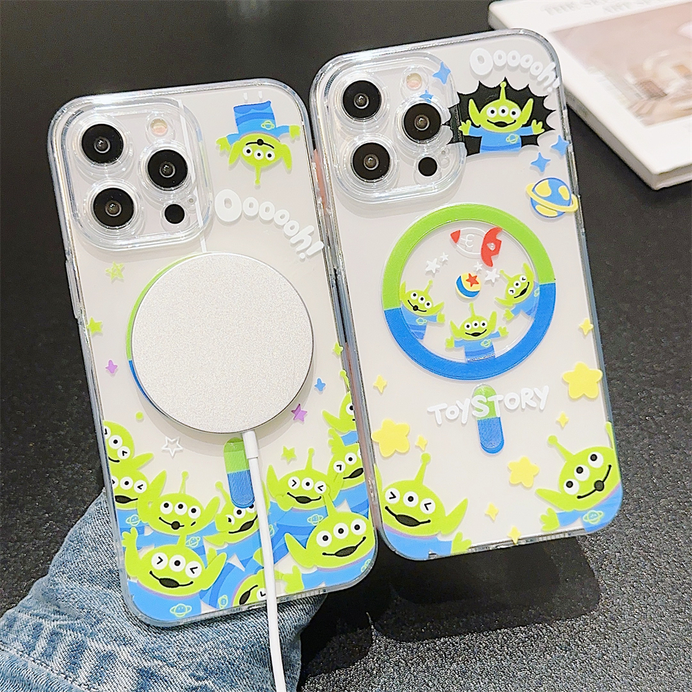 Case For iPhone 16 14 15 Pro Max Full Bump Case for iPhone 12 13 Pro Max Soft TPU Shockproof Case For iPhone 11 Cute Cartoon Toy Story Alien Case iPhone 14 Magnetic Case