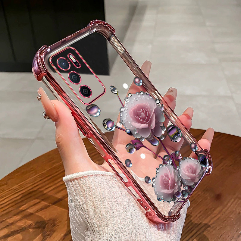 Case for OPPO A16 A16s A54S phone case pink flower bud four corner silicone TPU transparent soft shell DZ