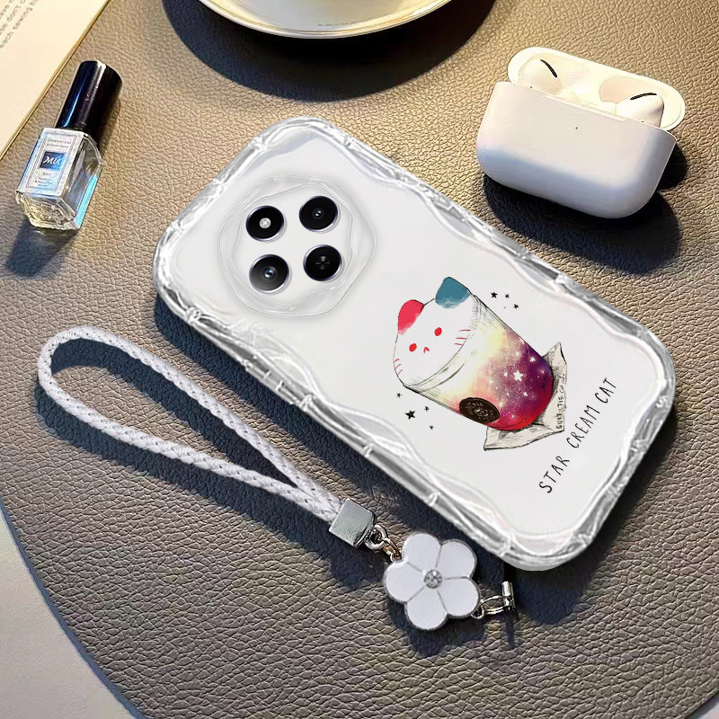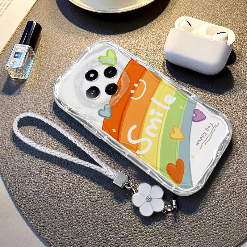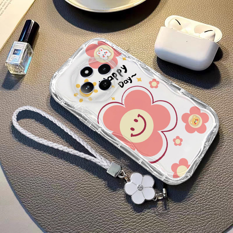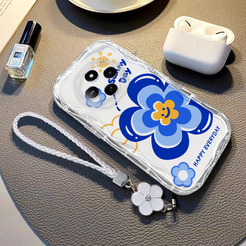 Case for Redmi 14C Transparent Shockproof camellia Lanyard Camera Protection Flower Soft TPU Phone Casing Cover