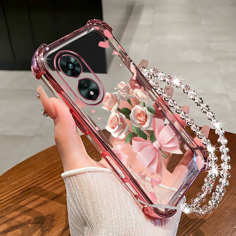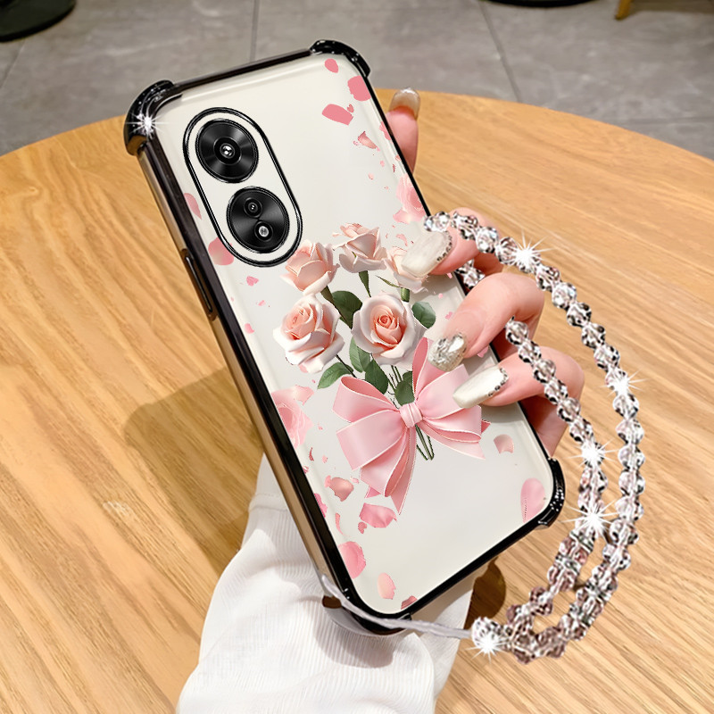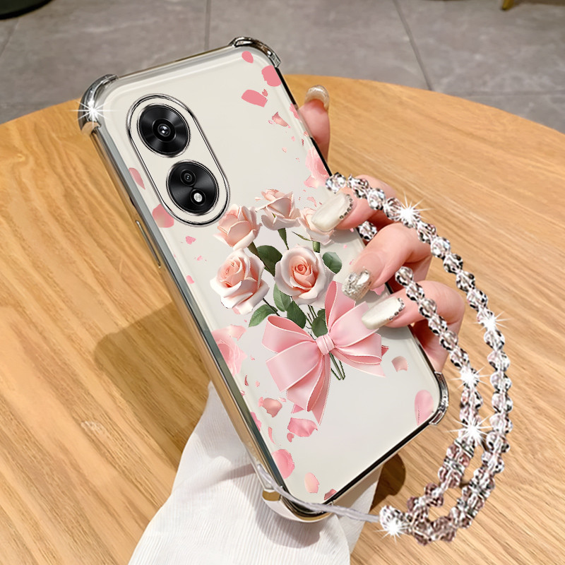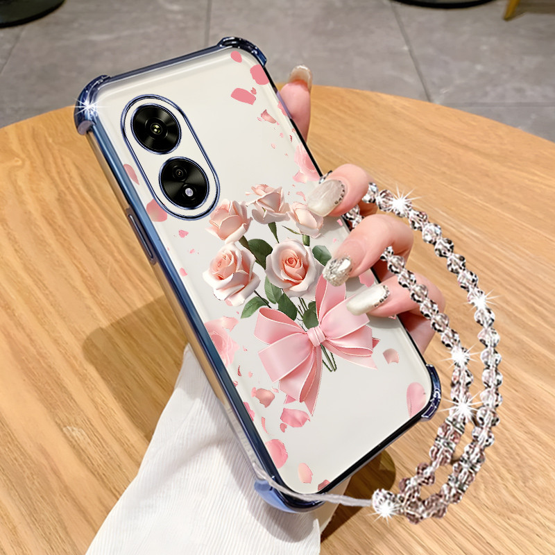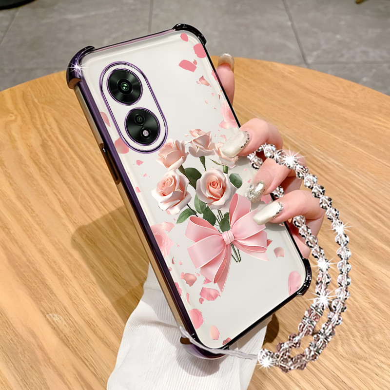 Case for vivo y02s phone casing Transparent electroplated border dreamy flower sparkling diamond hanging chain soft shell