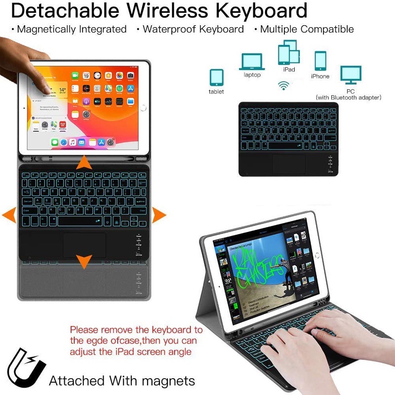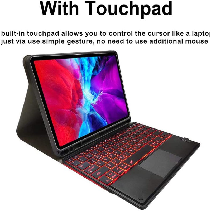 Case with Touchpad Keyboard For iPad pro 12.9 1th 2th 3th 4th gen 5th 6th generation 2015 2017 2018 2020 2021 2022 7-Colors Backlit Bluetooth Keyboard Cover Casing
