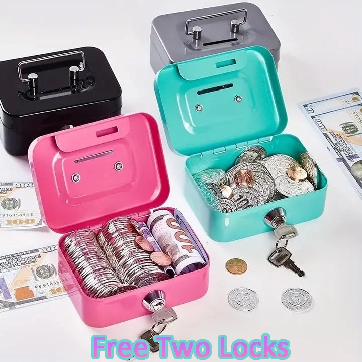 Cash Box With Lock Portable Steel Small Safebox Cash Coin Money Security Safe Household Locker Coin Jewelry Security Safety Box Safe Box