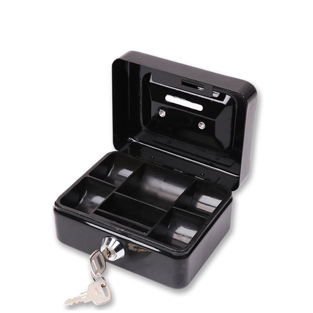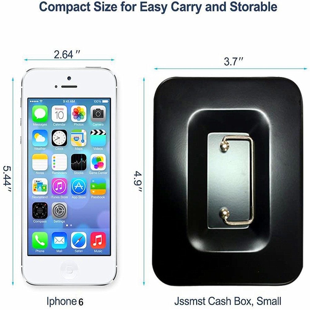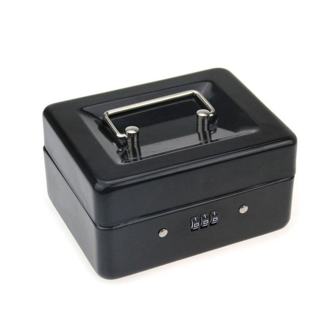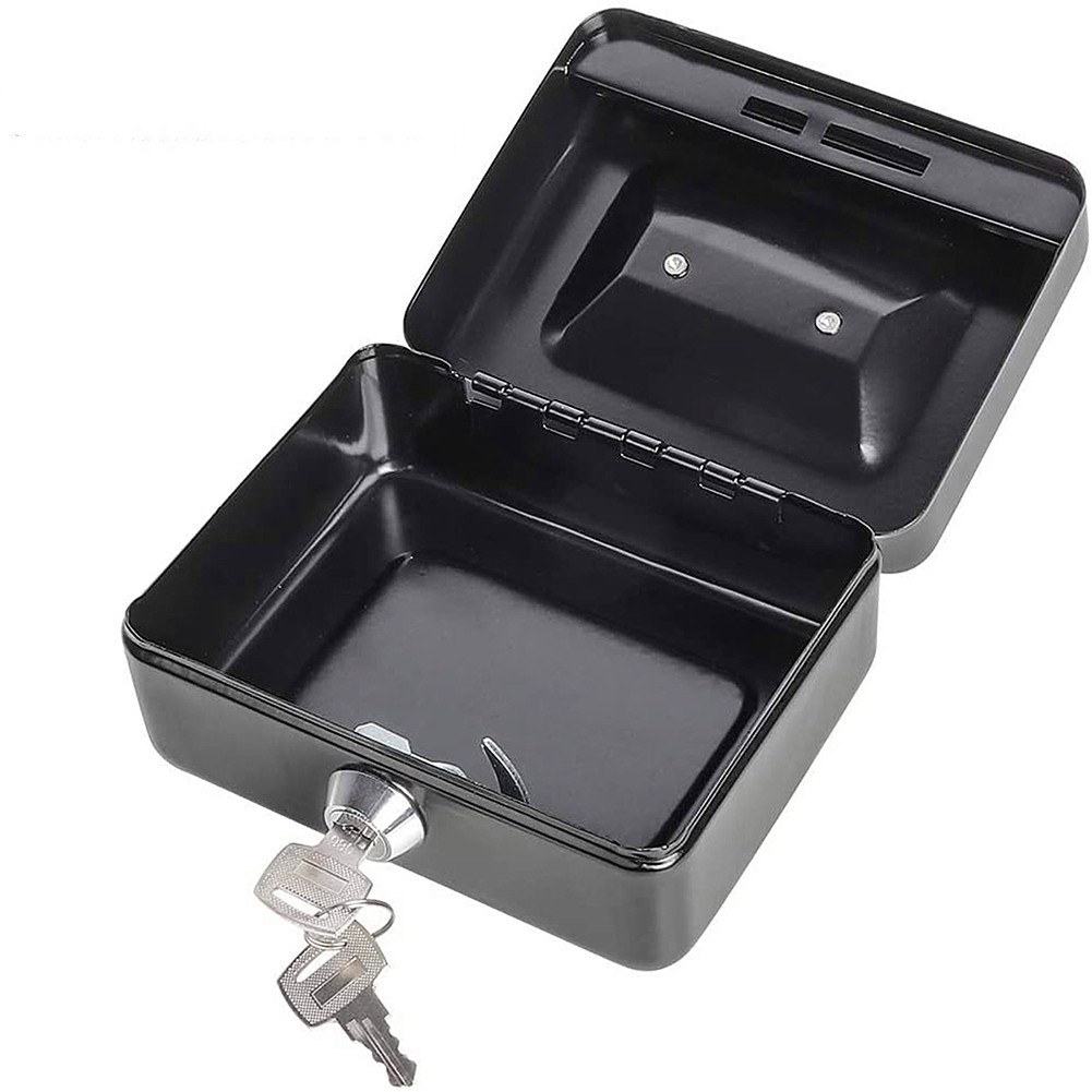 Cash box with lock, metal cash box, 100% safe, black, full size