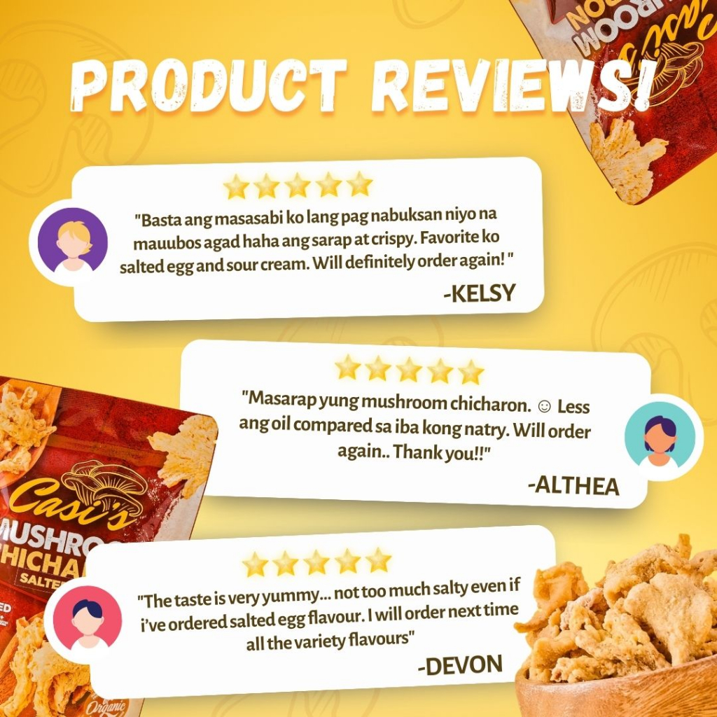 Casi's Mushroom Chicharon 100GRAMS(4 BESTSELLER) -Crunchy, Less-Guilt Snacking, Irresistible Flavor!