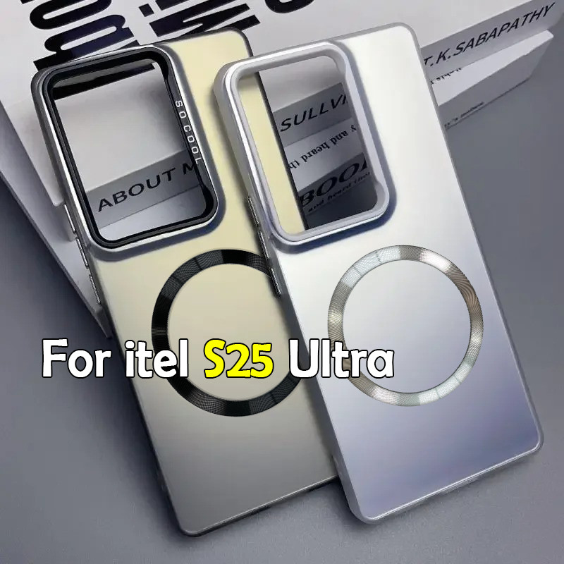 Casing For Itel S25 Ultra S 25 ItelS25Ultra ItelS25 5G Square Colorful Metal Magnetic Coil Case Car Mount Couple Soft Shockproof Camera Lens Protection Casing Back Cover