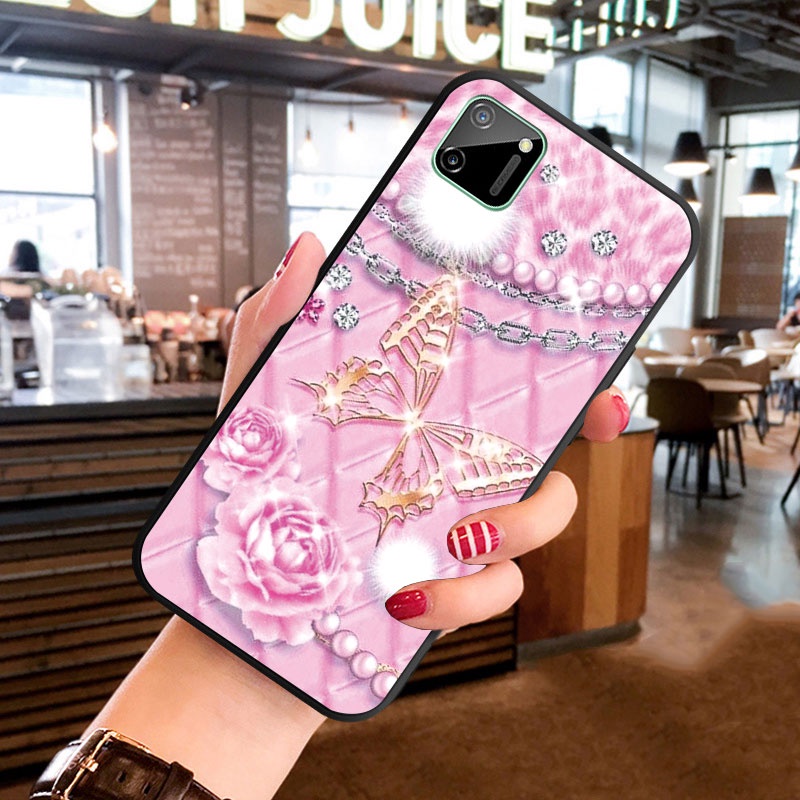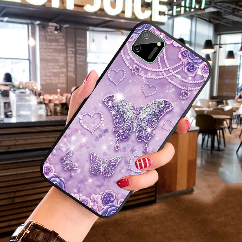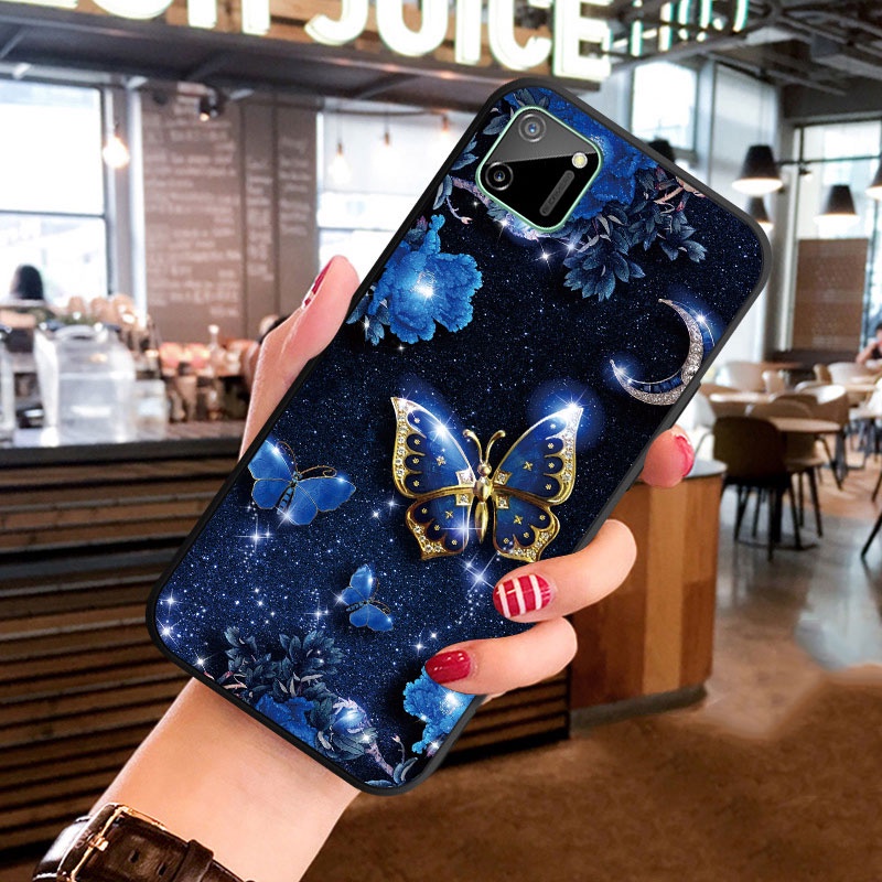 Casing For Realme C1 C2 C3 C11 2021 C12 Soft Silicoen Phone Case Cover Diamond Butterfly