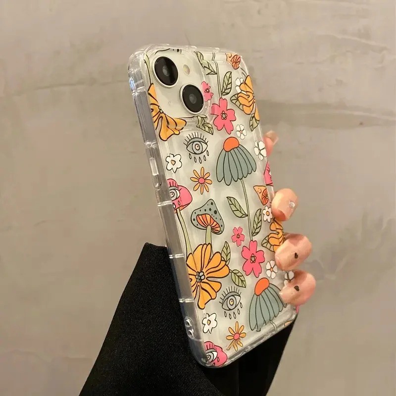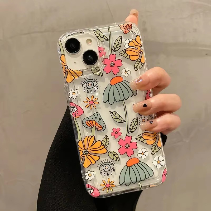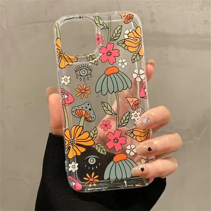 Casing For iPhone 11 16 15 Pro Max 16e 14 11 12 13 15 Pro XR XS Max X 7 8 Plus SE2022 Korean Cute Flower Silicone Clear Soft Shockproof Cover