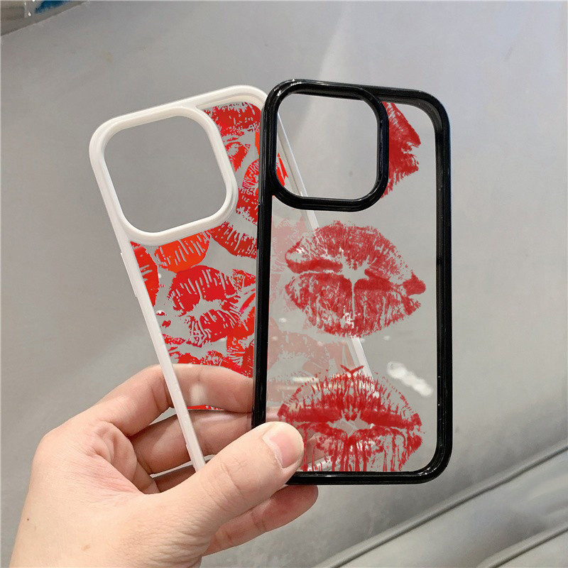 Casing For iPhone 16 15 Pro Max 11 13 14 12 Pro for iPhone 7 8 Plus XS Max X XR SE2022 Red Lip Pattern Clear Hard Silicone Shockproof Cover