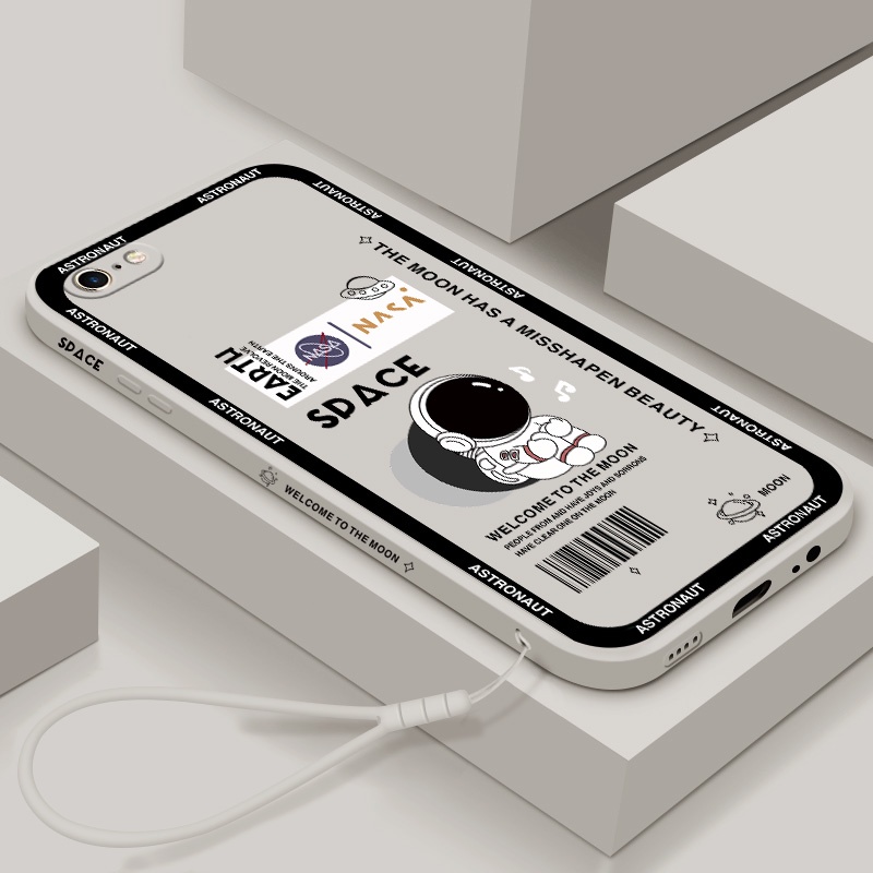 Casing For iPhone 5 5s 6 Plus 6s Plus 7 Plus 8 Plus Cute astronaut Soft Silicone straight edge anti-fingerprint anti-fall protection mobile phone case with lanyard