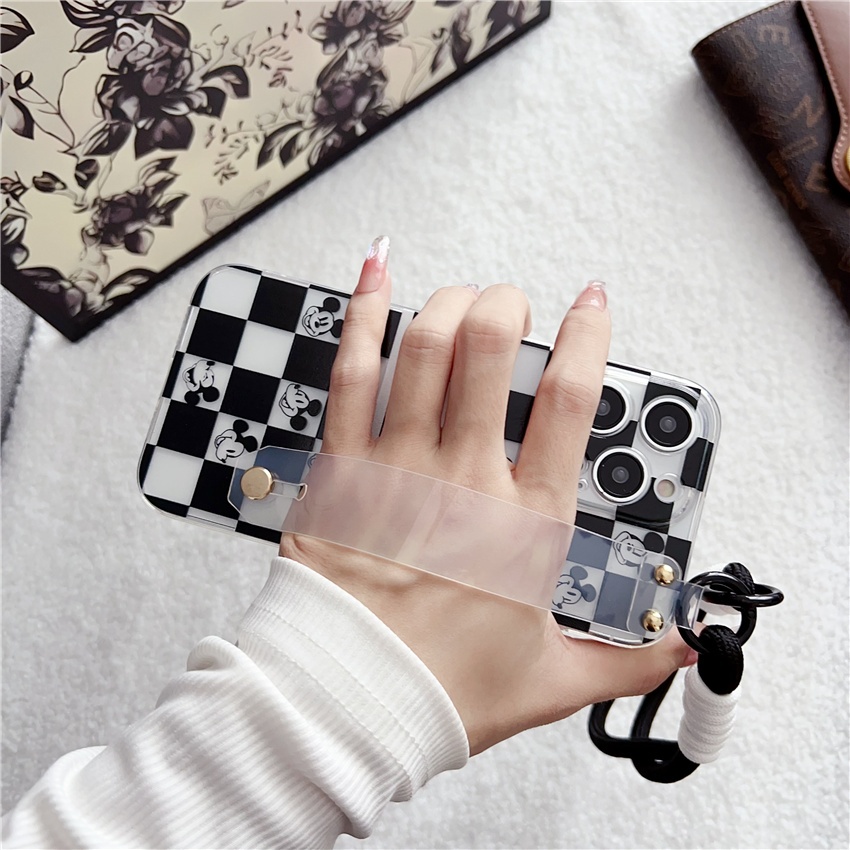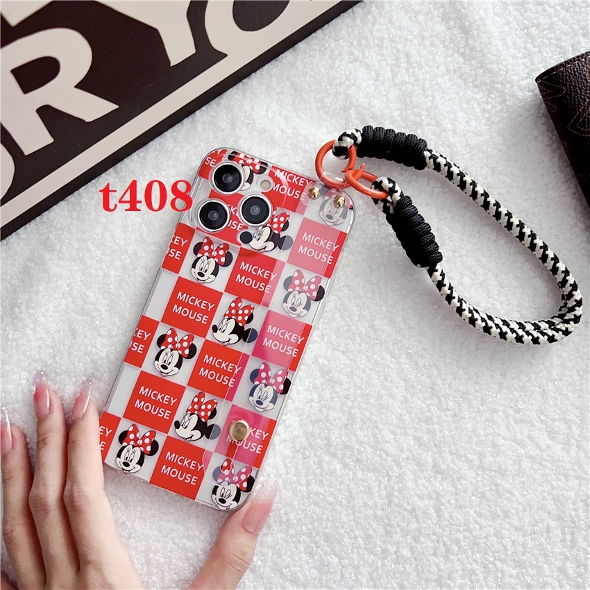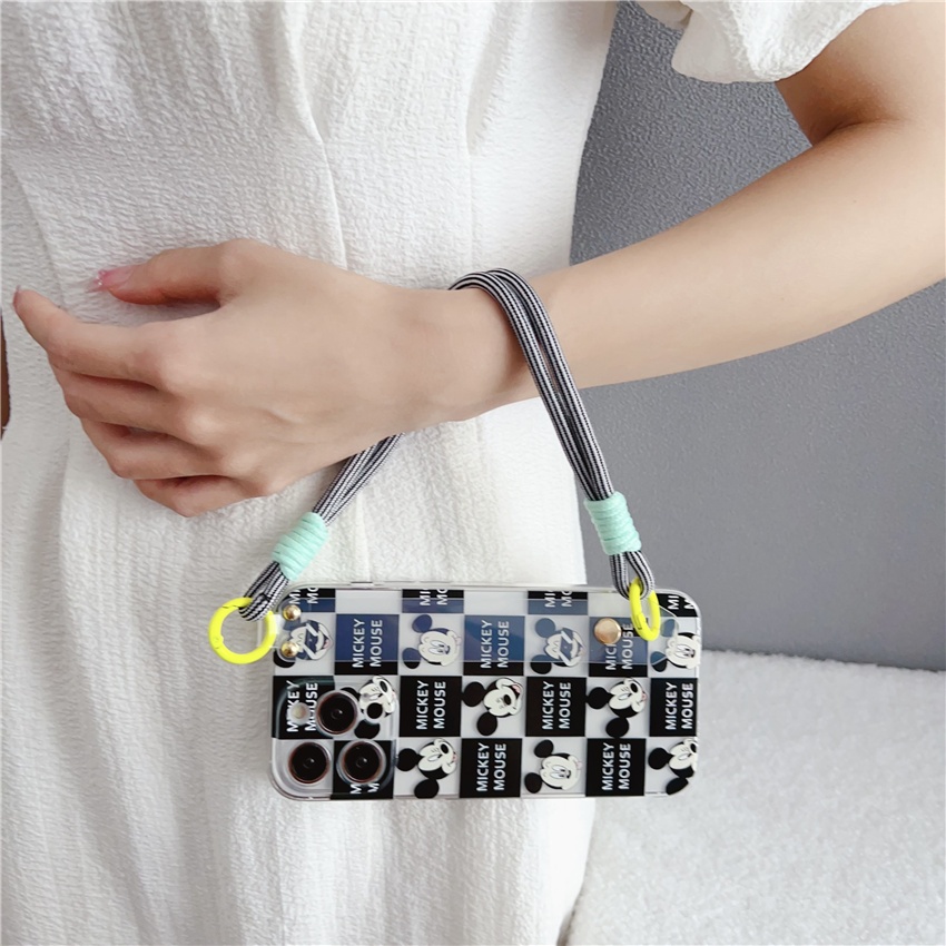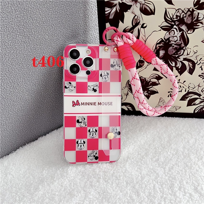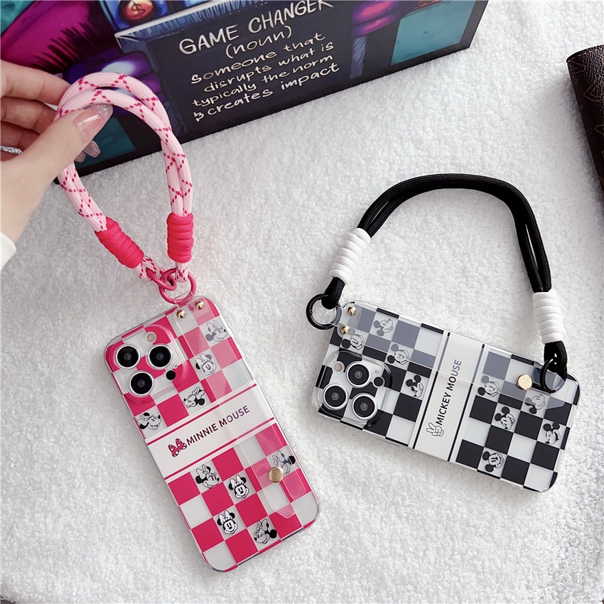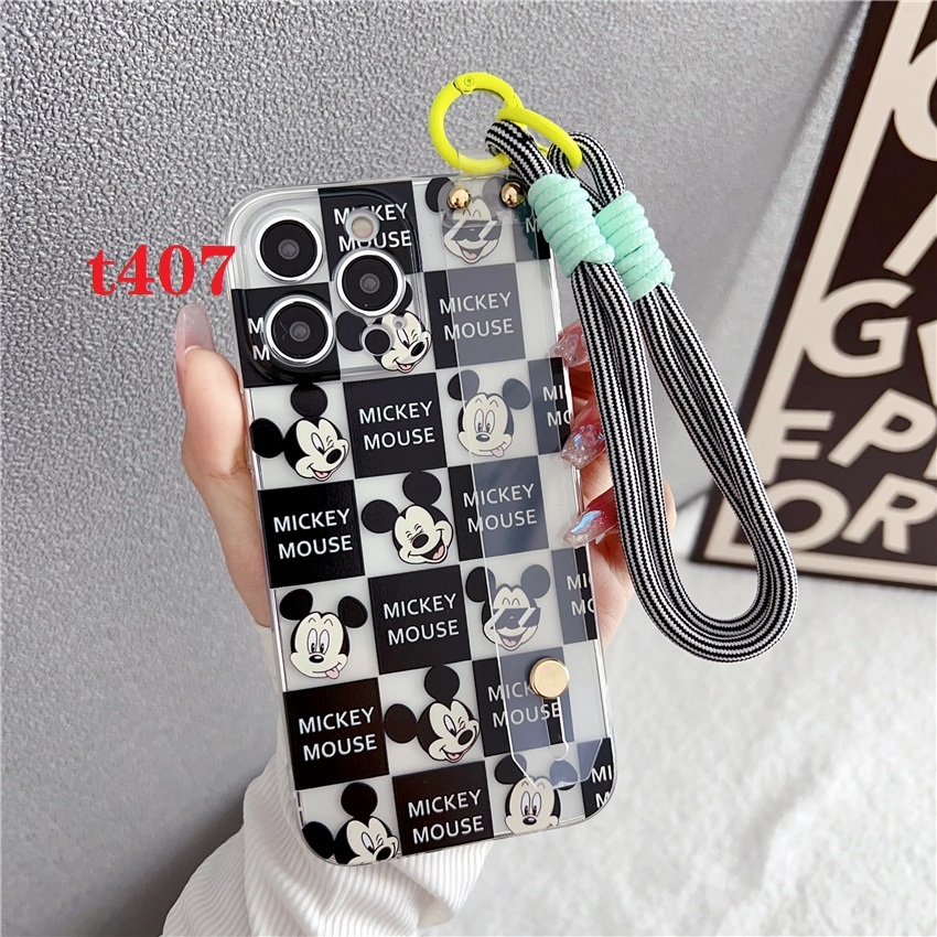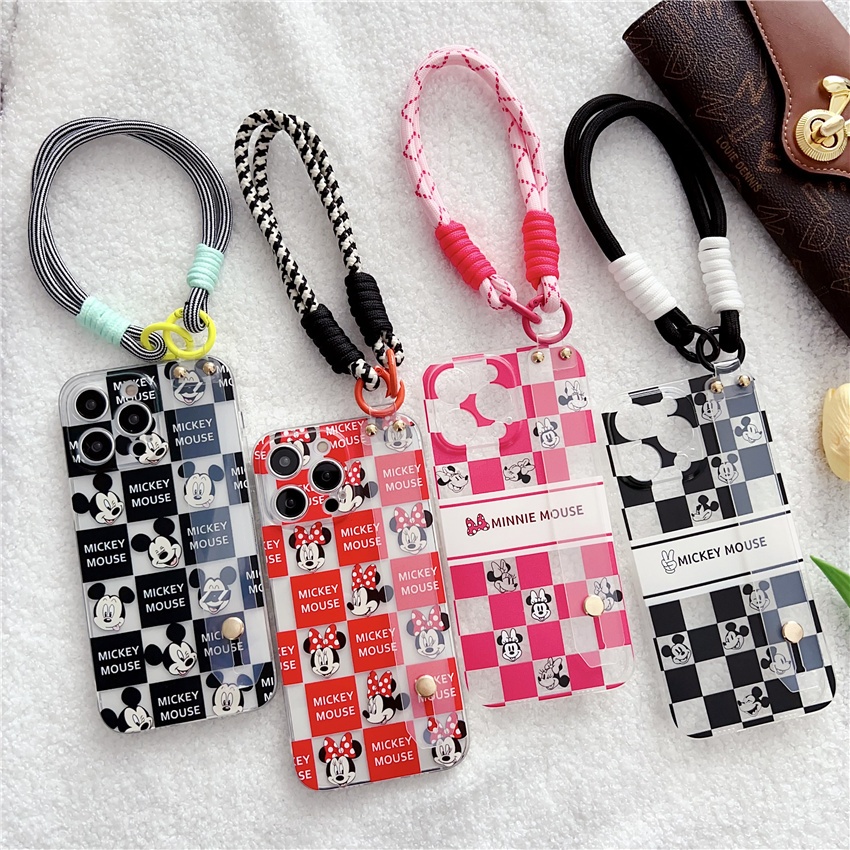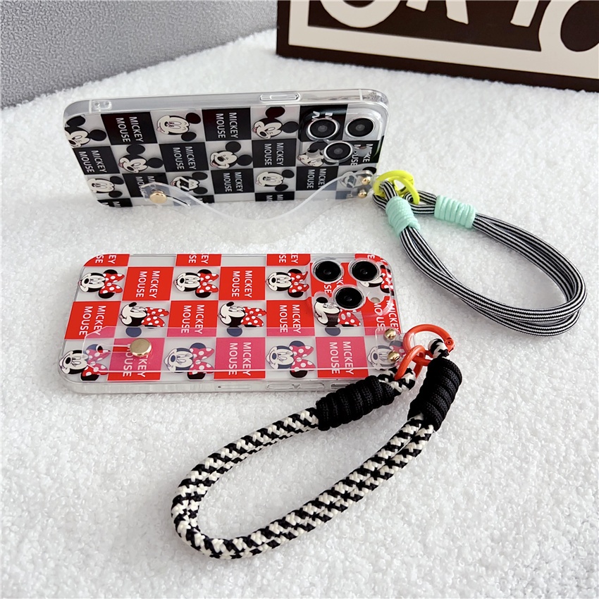 Casing Google Pixel 9 8 7 6 Pro 7A 6A 5 5A 3D Cute Cartoon Minnie Mickey Wristband Protective Soft Case Cover With Lanyard