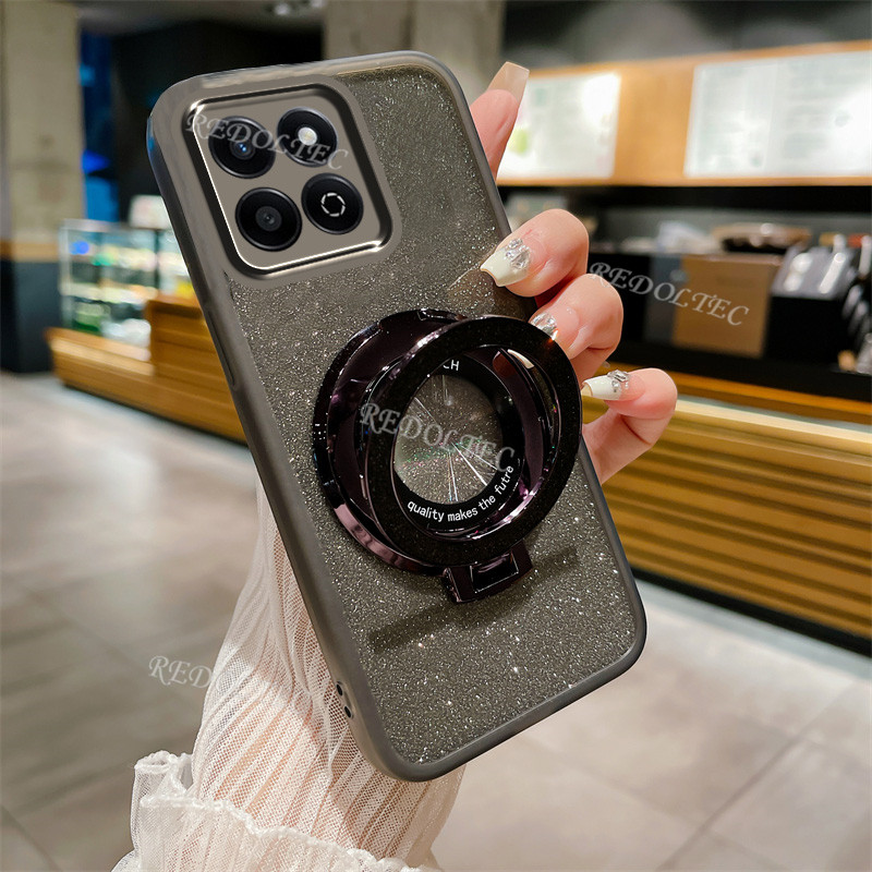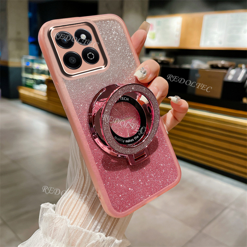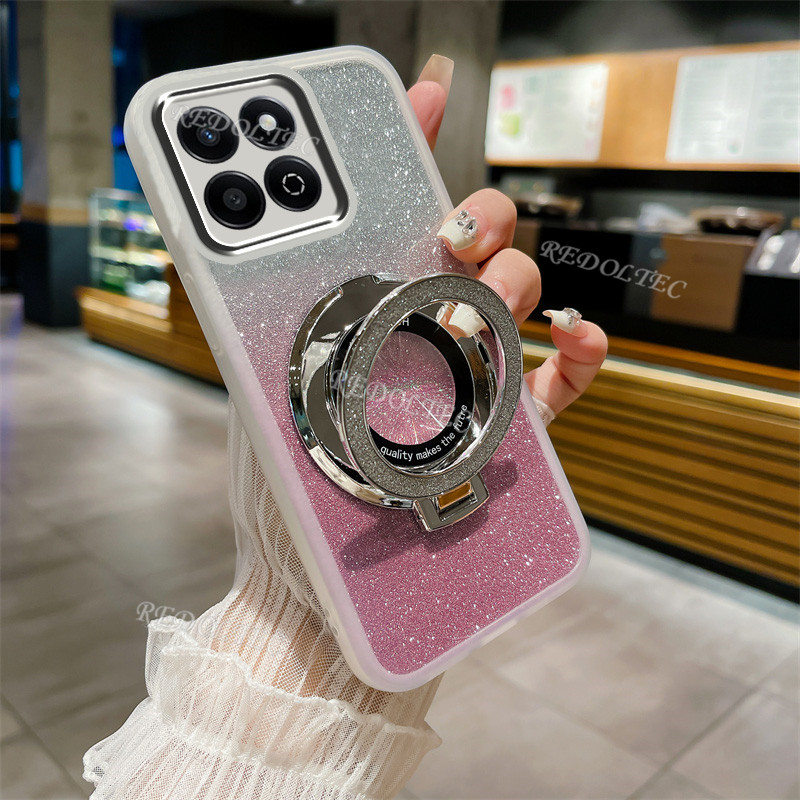 Casing Honor X7C 4G 2024 New Design Transparent Glitter Case HonorX7C Honor X 7C Gradient Bling Phone Cover With Magnetic Stand Holder