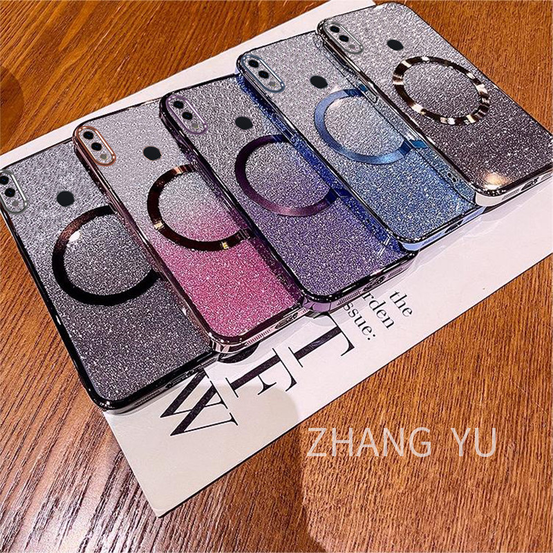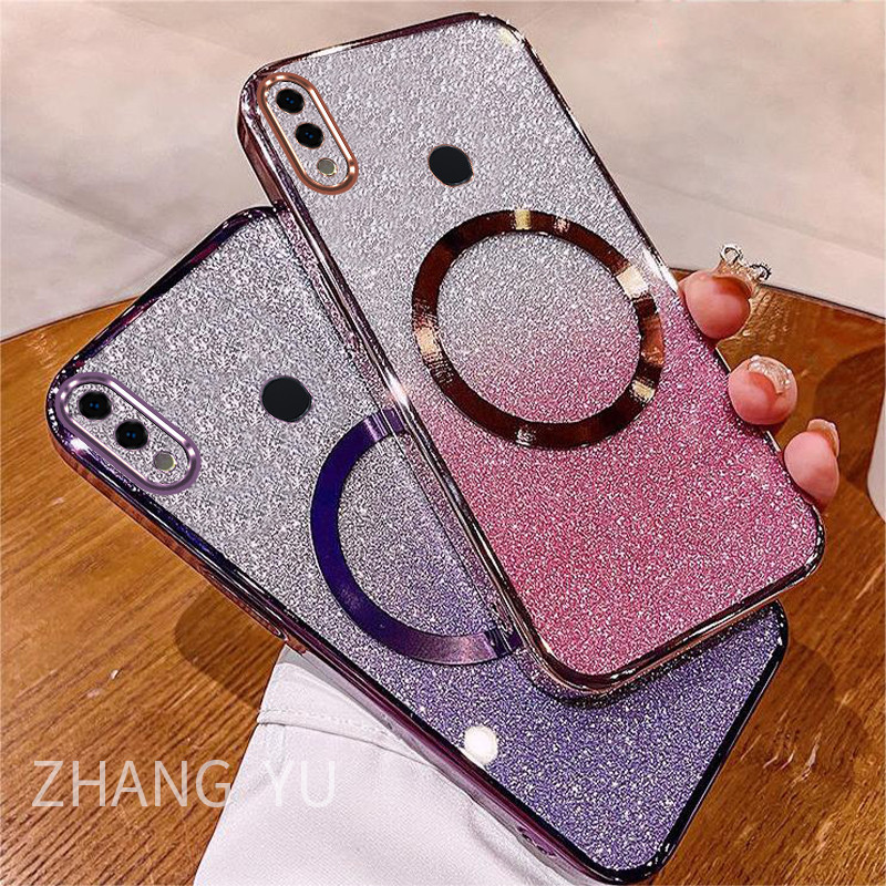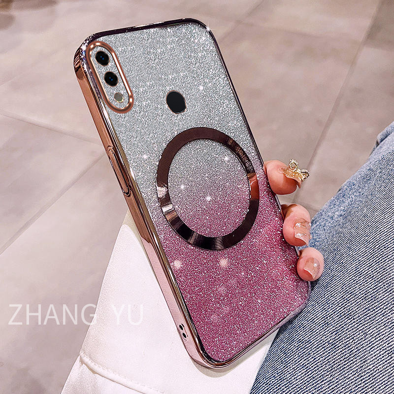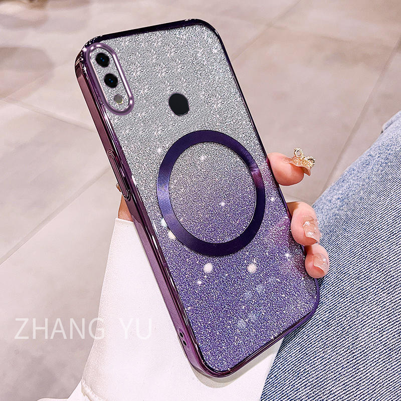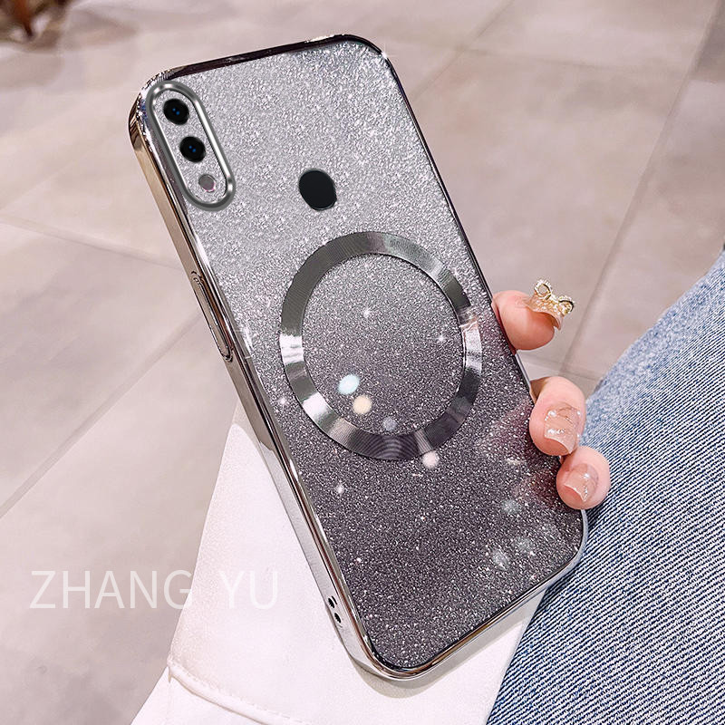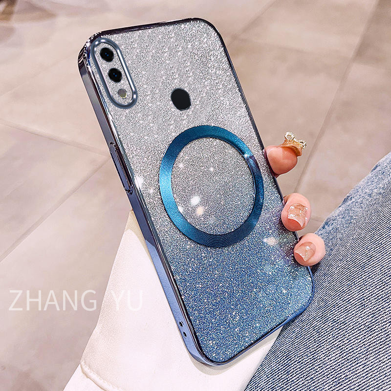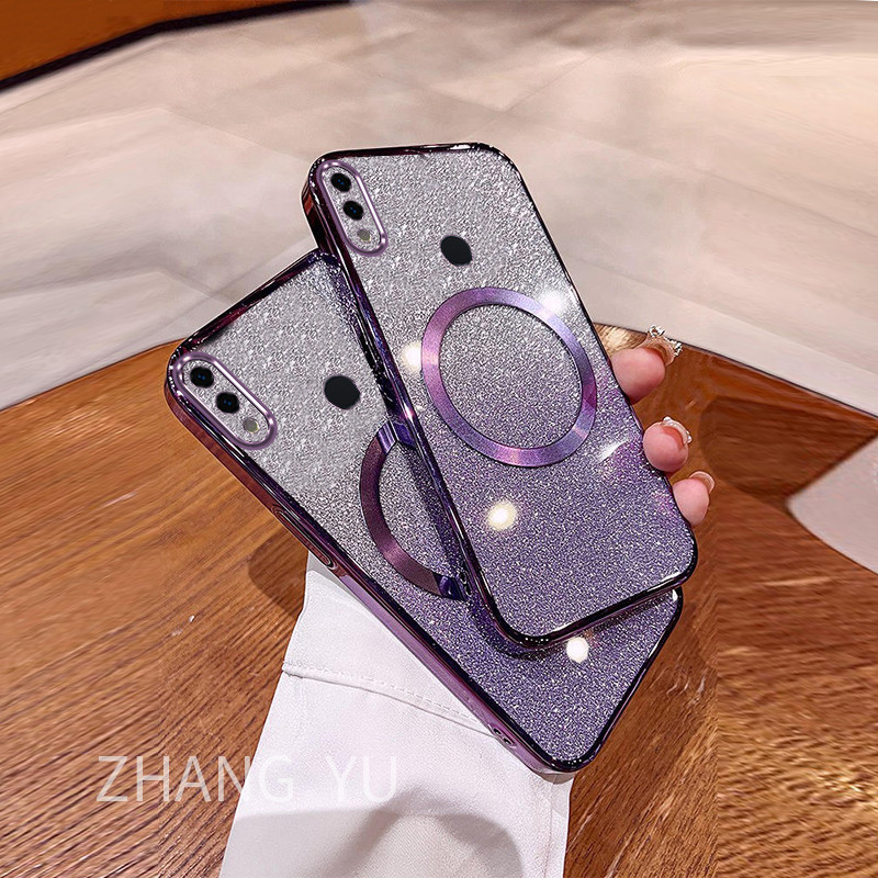 Casing Huawei Honor 8X 9X PRO 10 30 LITE 20 30 PRO 30S Phone Case Magnetic suction patch New Gradient Gloss Paper Sparkling Powder Transparent Electroplated Dual purpose soft Case