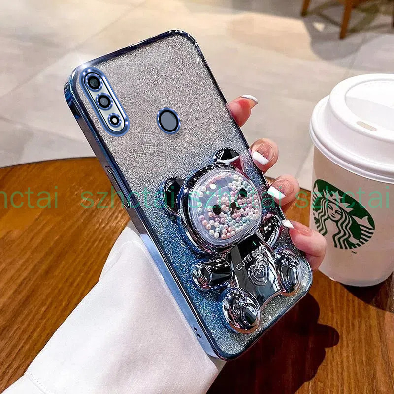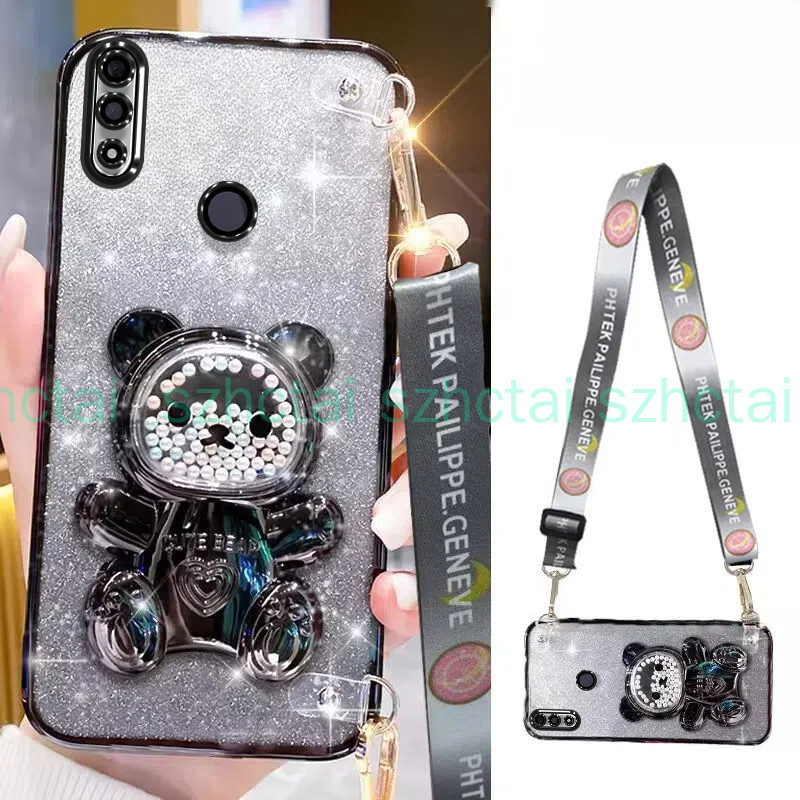 Casing Huawei y7 2019 y7 prime 2019 y7 pro 2019 y9 2019 long wrist strap style with colorful bead bear bracket holder luxury soft tpu phone case