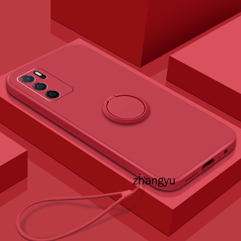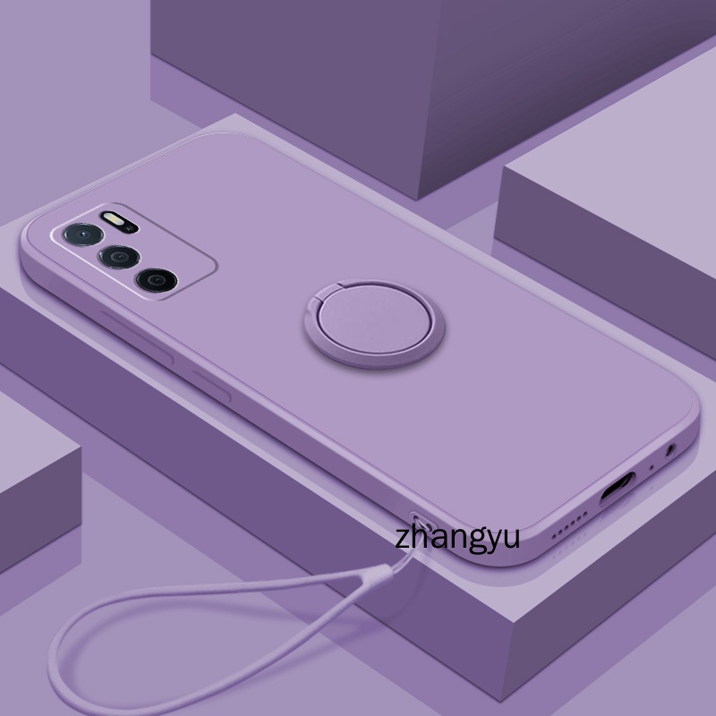 Casing OPPO A16 Straight-edge liquid silicone precision camera case Soft phone case with stand lanyard