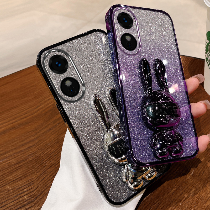 Casing OPPO A17 A17K phone case TPU 3D NICE Rabbit stereo stand flexible silicone ultra-thin electroplated soft case