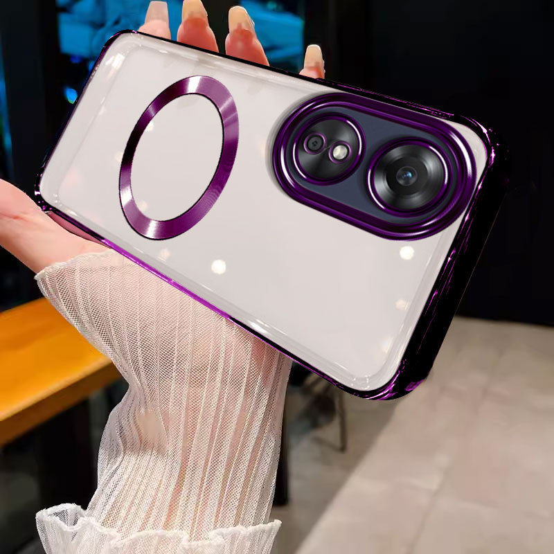 Casing OPPO A17 OPPO A17K Phone case Soft gold border transparent bumper with magnetic suction ring shock absorber protector wstmcxq01