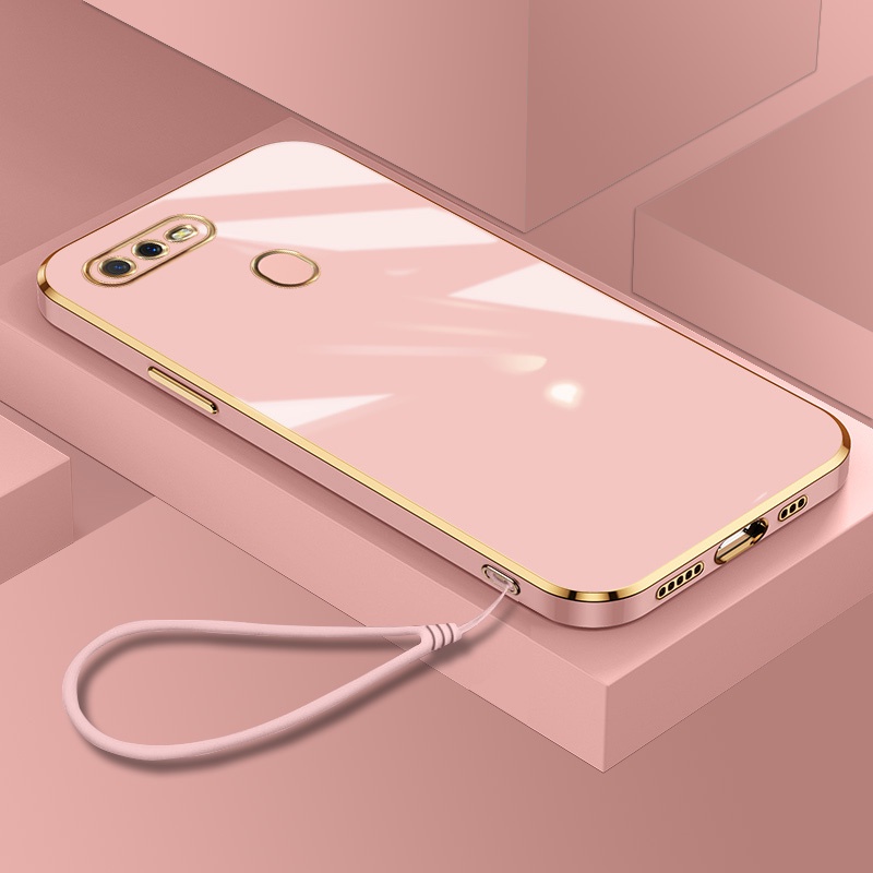 Casing OPPO CPH1909 CPH1920 CPH1803 CPH1853 CPH1931 CPH2219 CPH2197 CPH1729 CPH2061 CPH2059 CPH1821 CPH1969 Ultra-thin plating Square Silicone Case with lanyard Phone Case