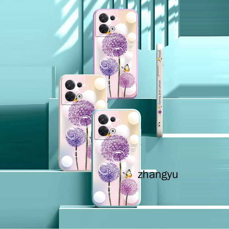 Casing OPPO Reno 8 5G Reno 8 pro oppo reno 8 Pro plus dandelion flower straight edge all-inclusive lens silicone soft shockproof mobile phone case