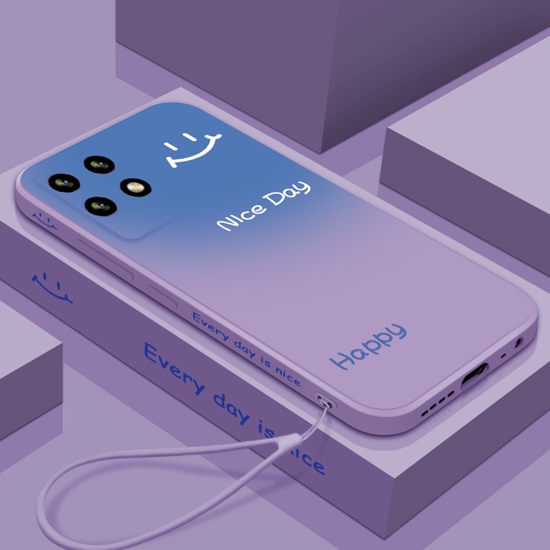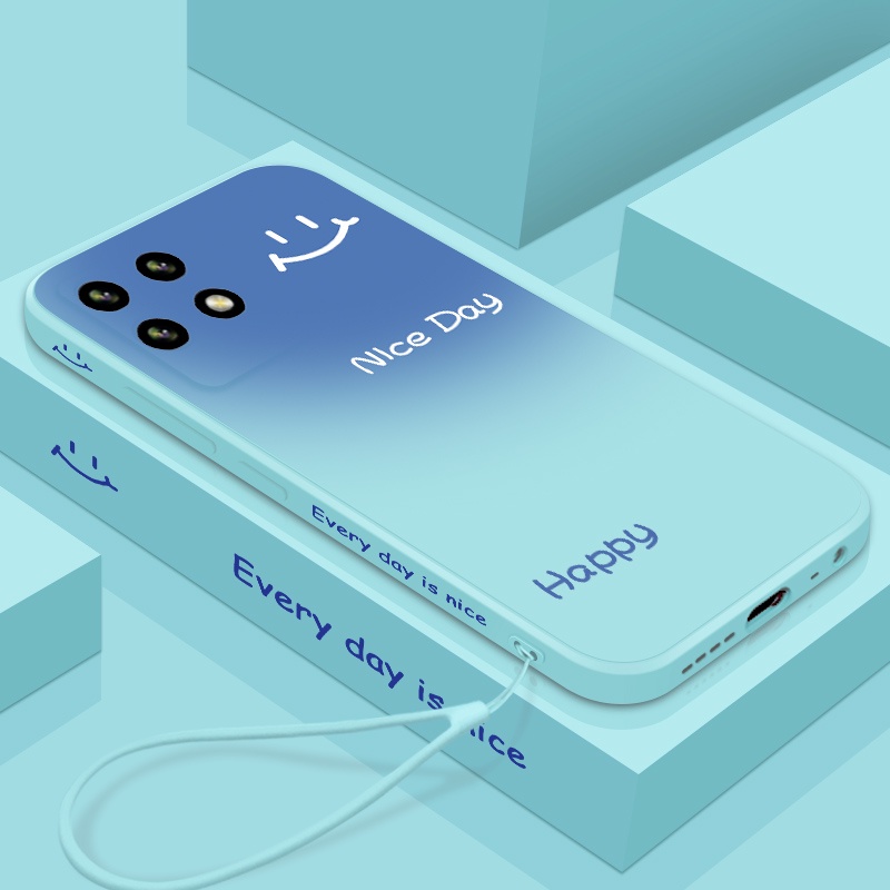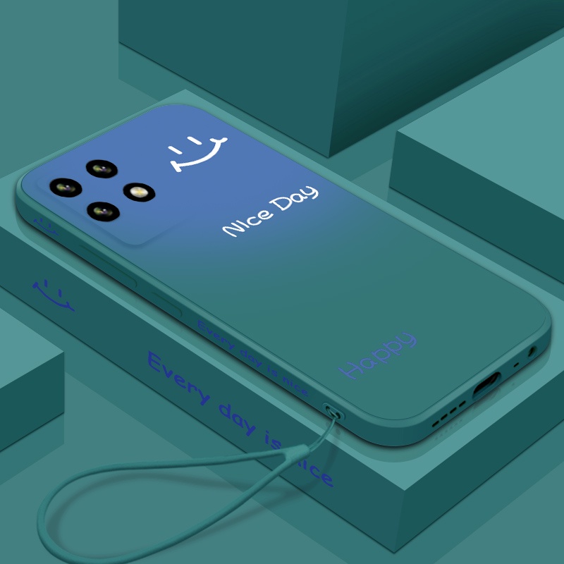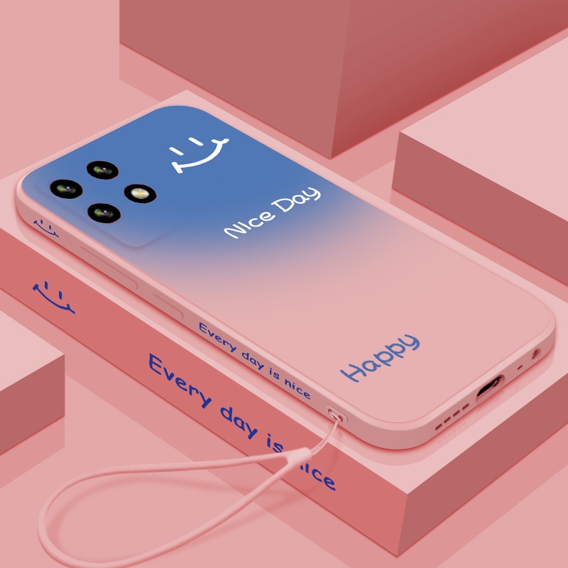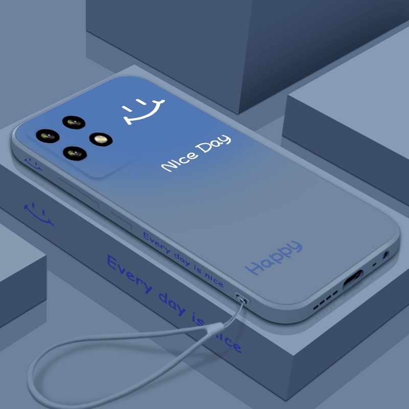 Casing Realme 8i REALME 8 PRO mobile phone case straight edge liquid silicone soft case side gradient smiley shockproof all-inclusive cute couple ultra-thin ins phone case