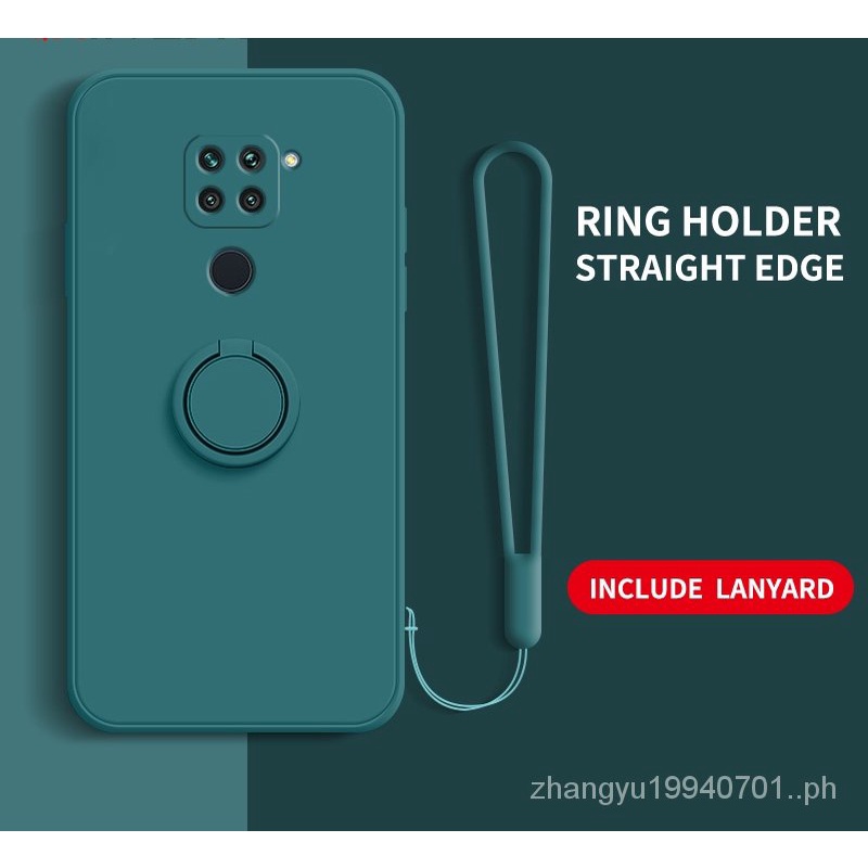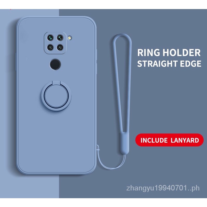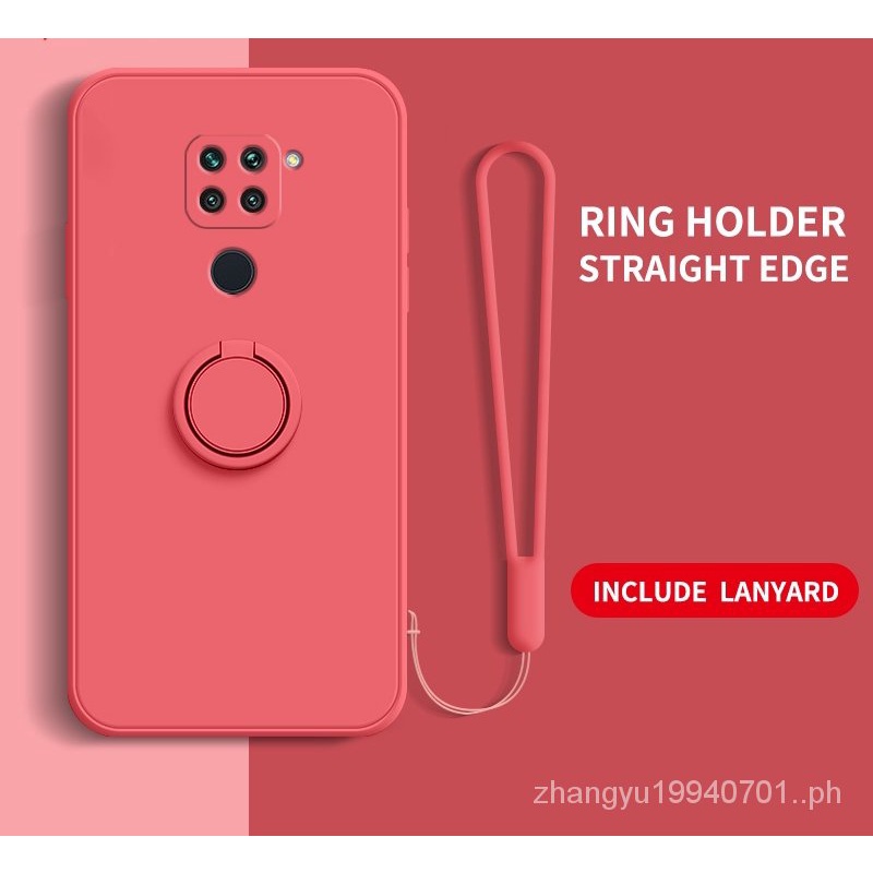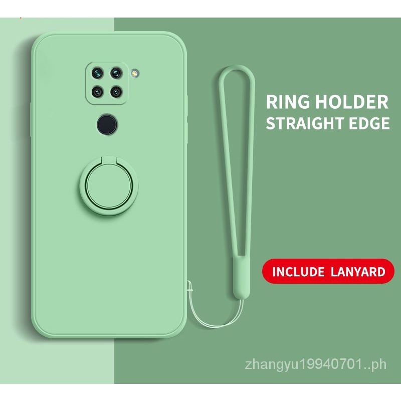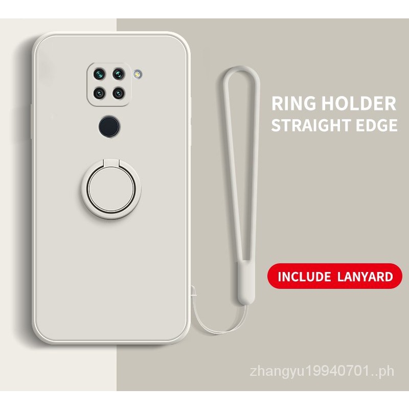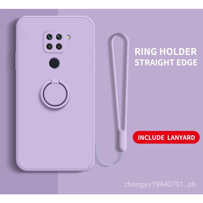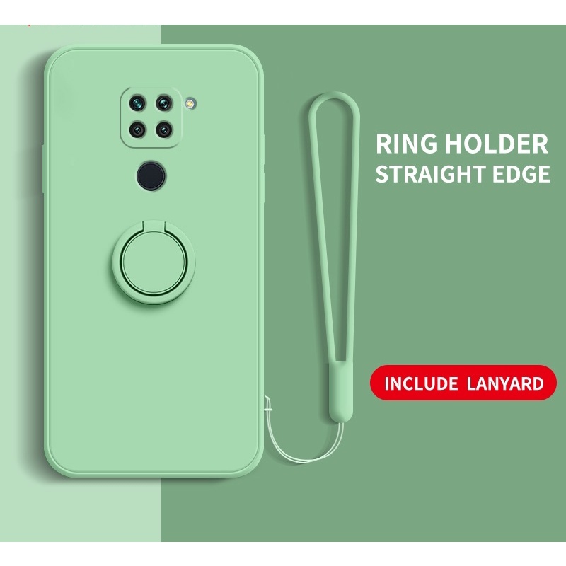 Casing Redmi Note 9 Note 9s Straight edge Liquid Silicone Precise Camera Coverage Casing Soft Phone Cover with Stand Lanyard