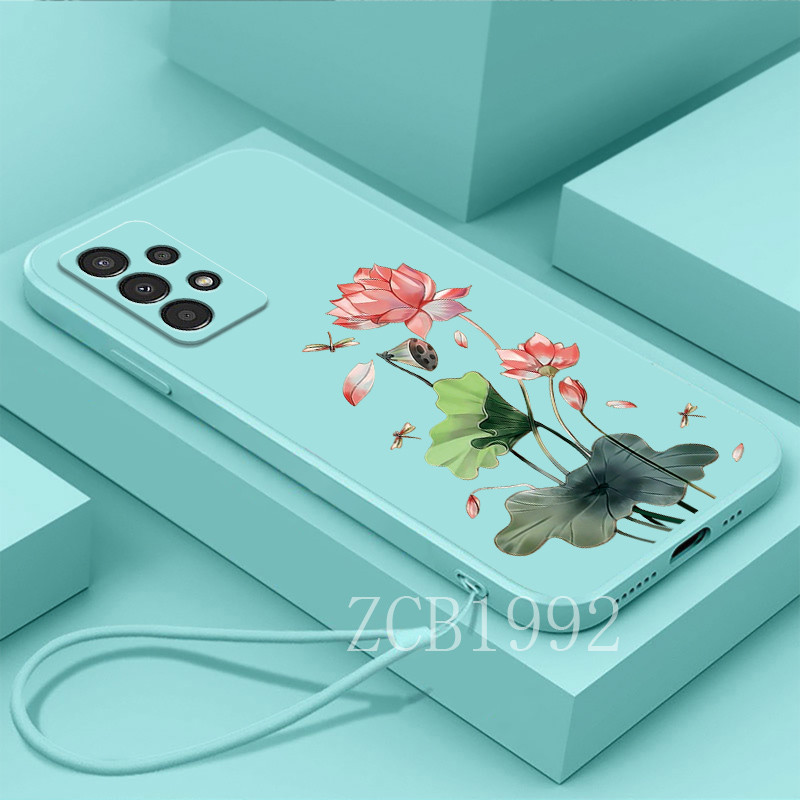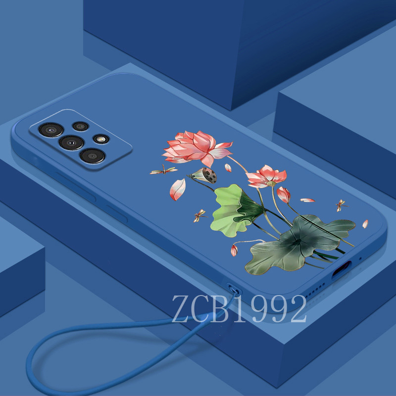 Casing Samsung A13 4G A13 LITE 4G A23 A32 A52 A72 A33 A53 A73 5G phone case TPU dragonfly lotus shock-absorbing soft shell with anti drop hand rope