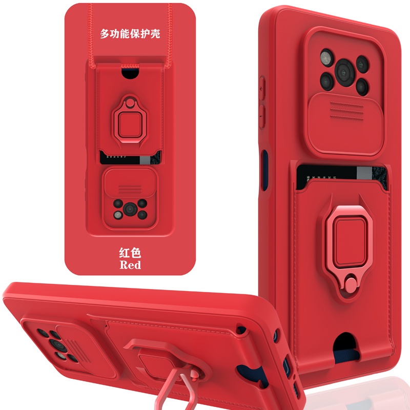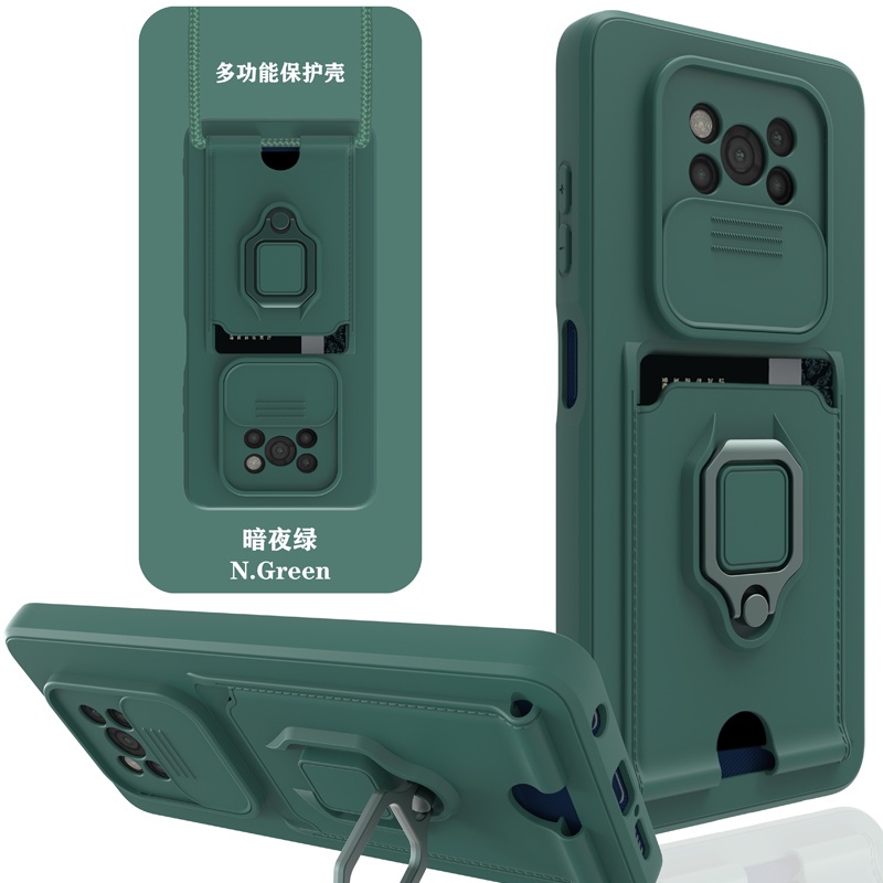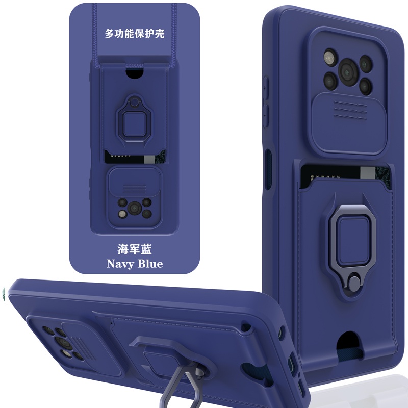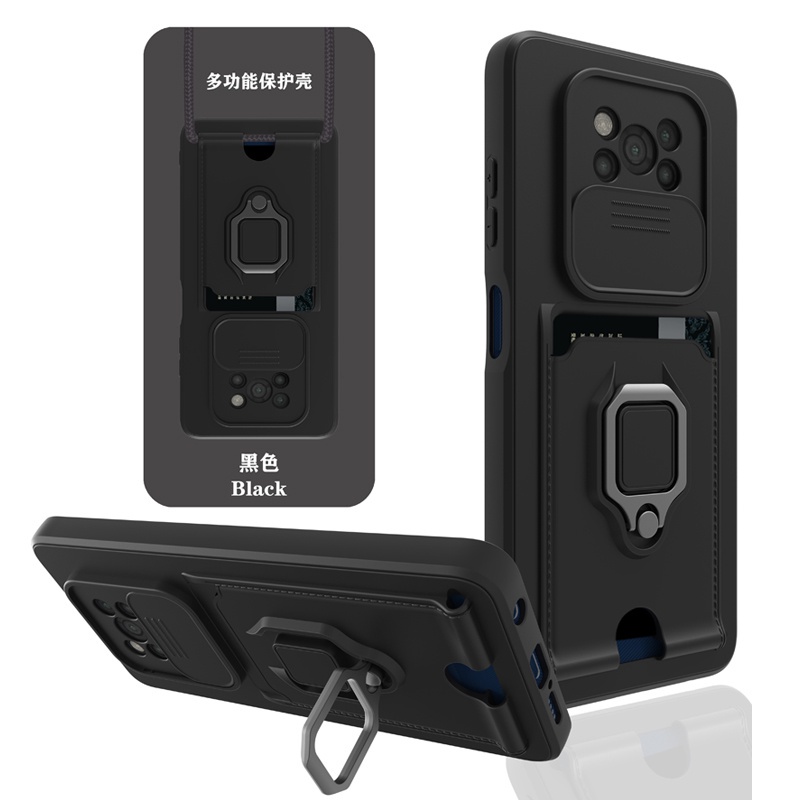 Casing Xiaomi Mi 12T 11T Pro 11 Lite 5G Ne POCO M3 X3 NFC X5 Pro With Card Slot Rotating Bracket Push-pull lens Protection Phone Case