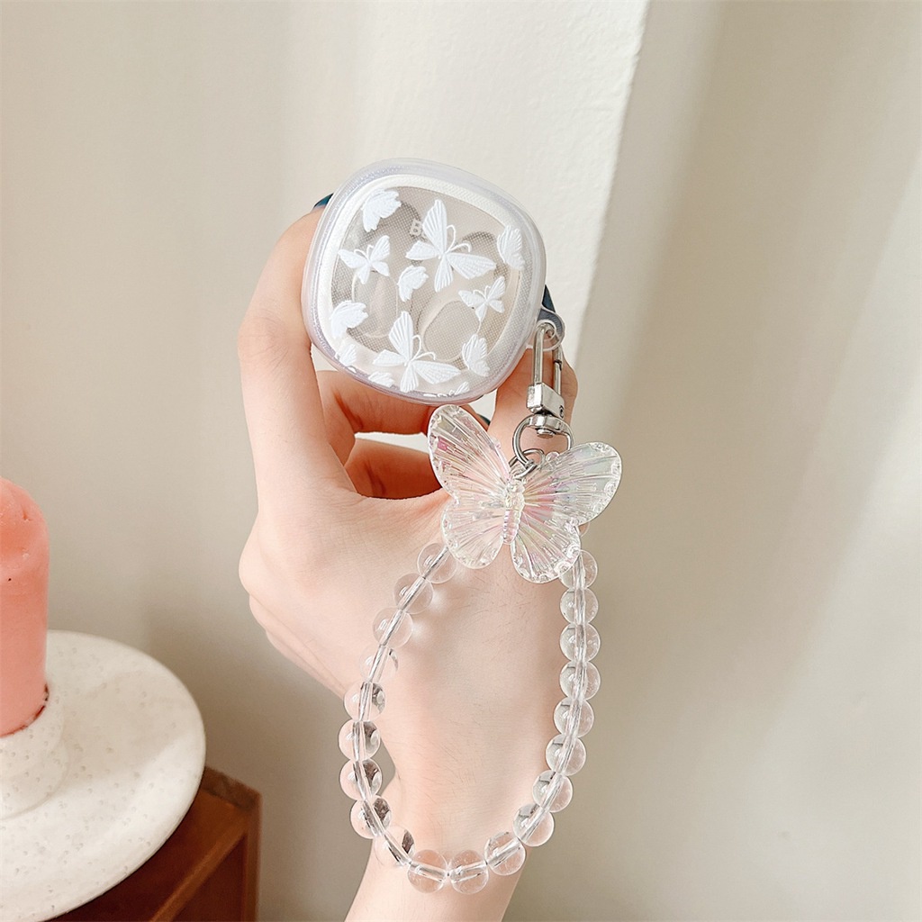 Casing for Baseus WM01 WM02 Butterfly Flower Love Heart Bluetooth TPU Clear Soft Earphone Case with Hand Chain Bracelet Wireless Headset Protective Cover