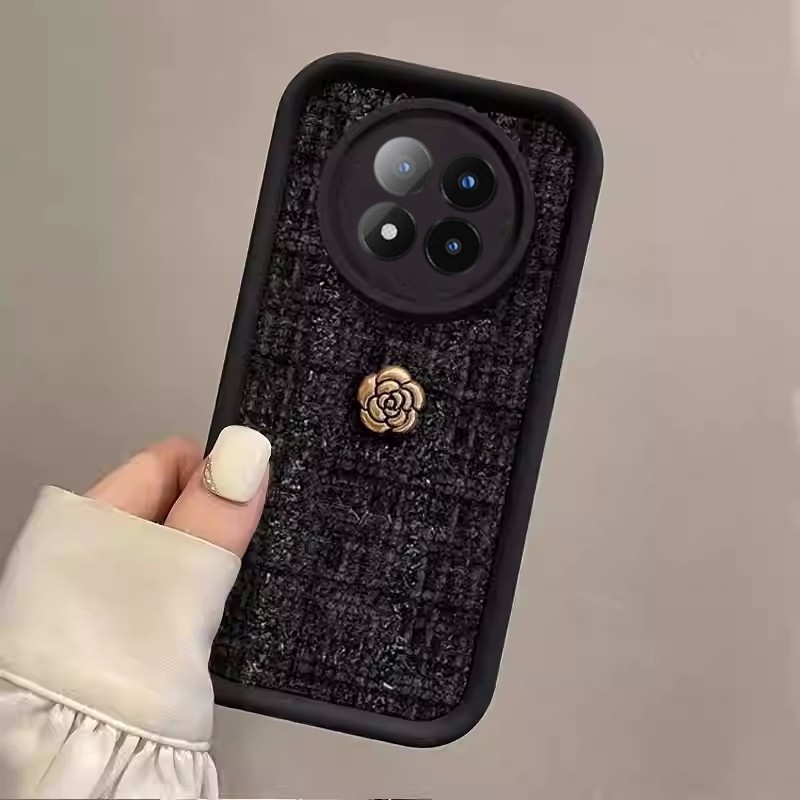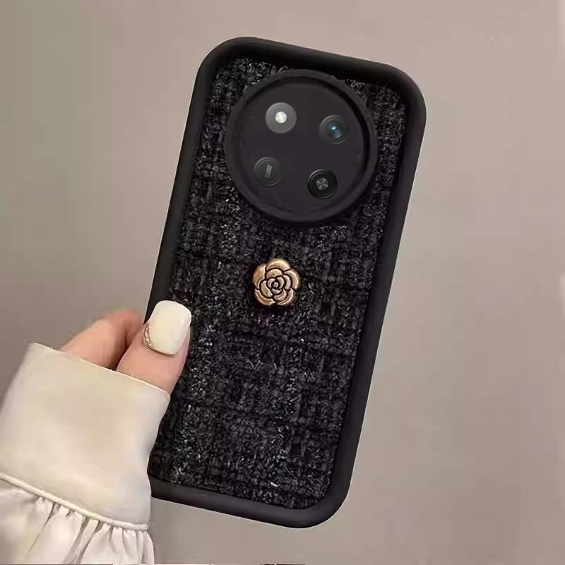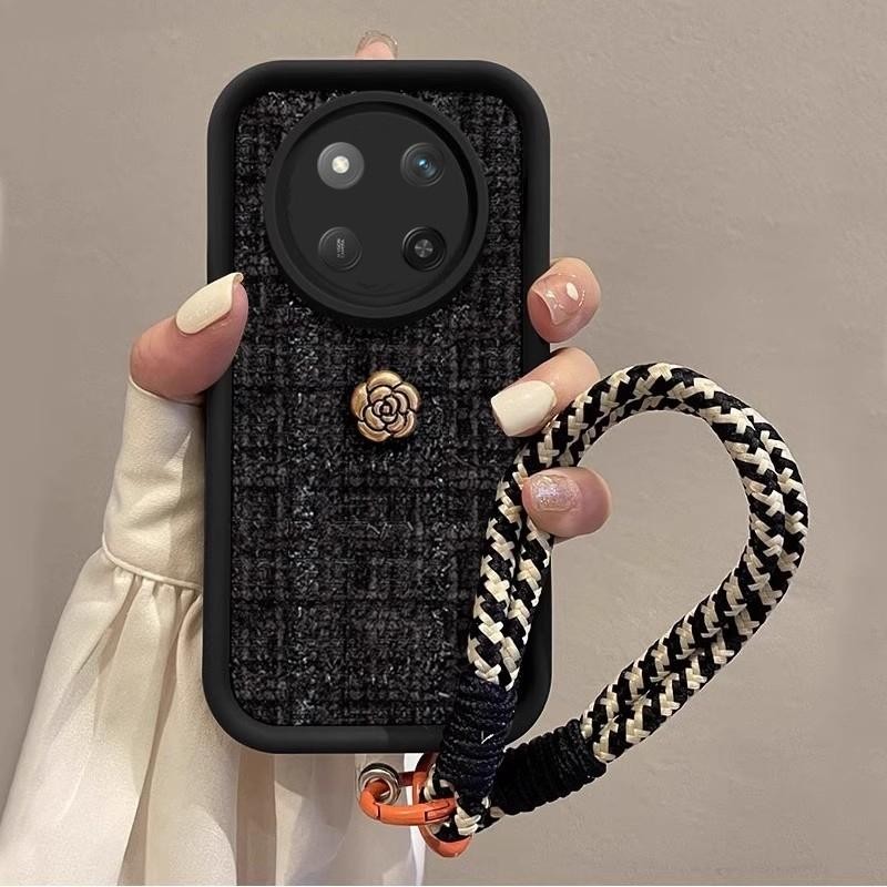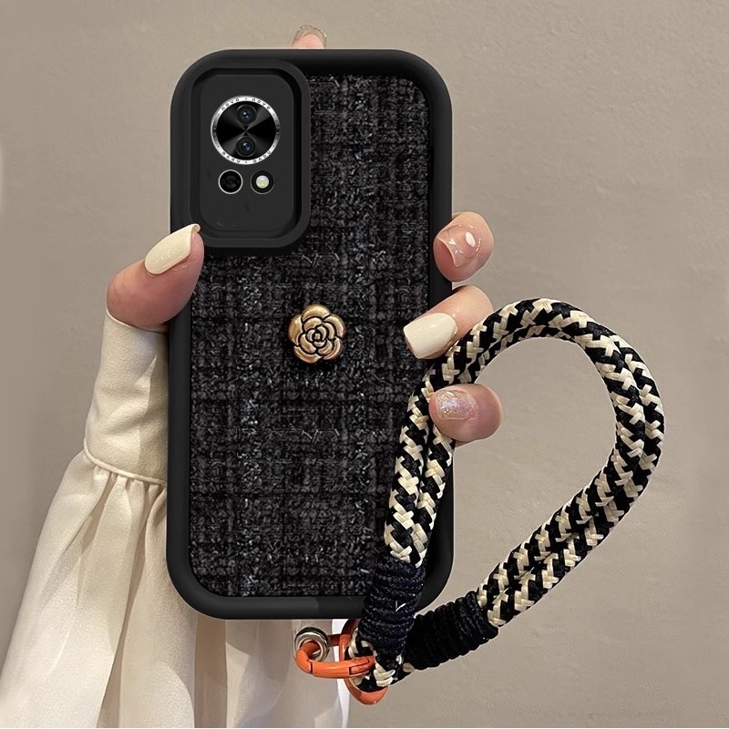 Casing for Huawei Nova 13 Pro Nova 13i Nova13 Pro Vintage Golden Camellia Elegant Artistic Black Woven Short Lanyard Phone Case Lens Protection Shockproof Silicone Soft Cover