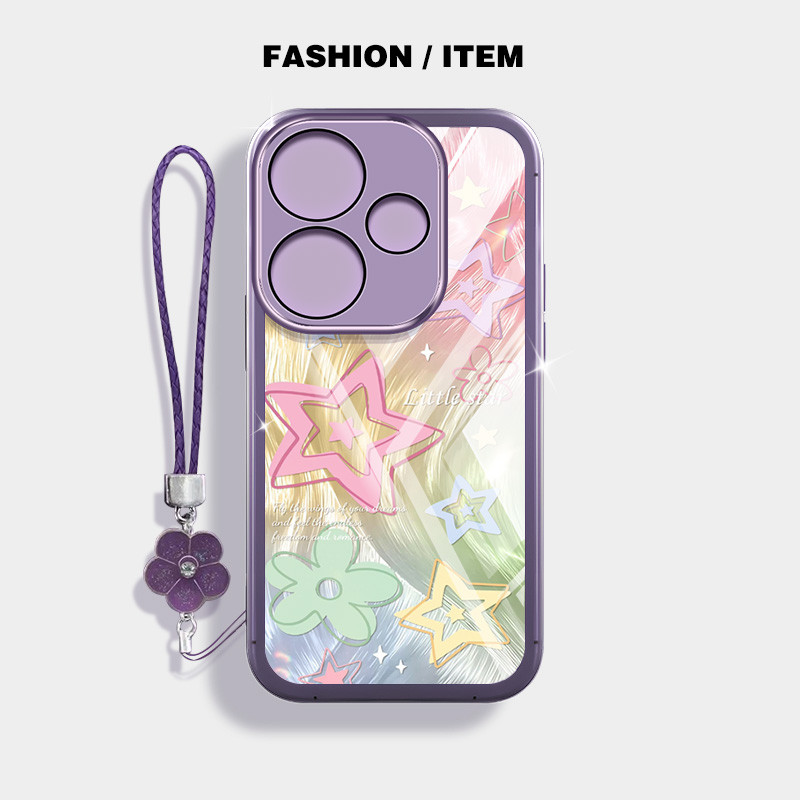 Casing for Oppo A6 A5i A5 Pro 5G 4G A5X A5i A5 4G 5G Colorful Star Pattern with Flower Hanging Rope Anti Fall Phone Protective Case