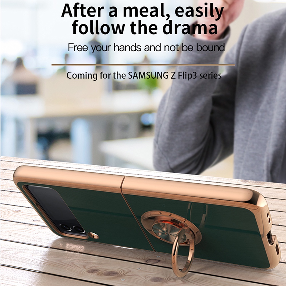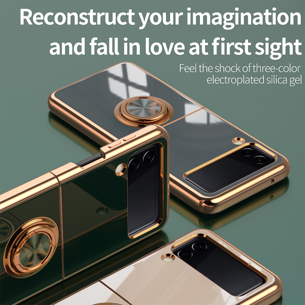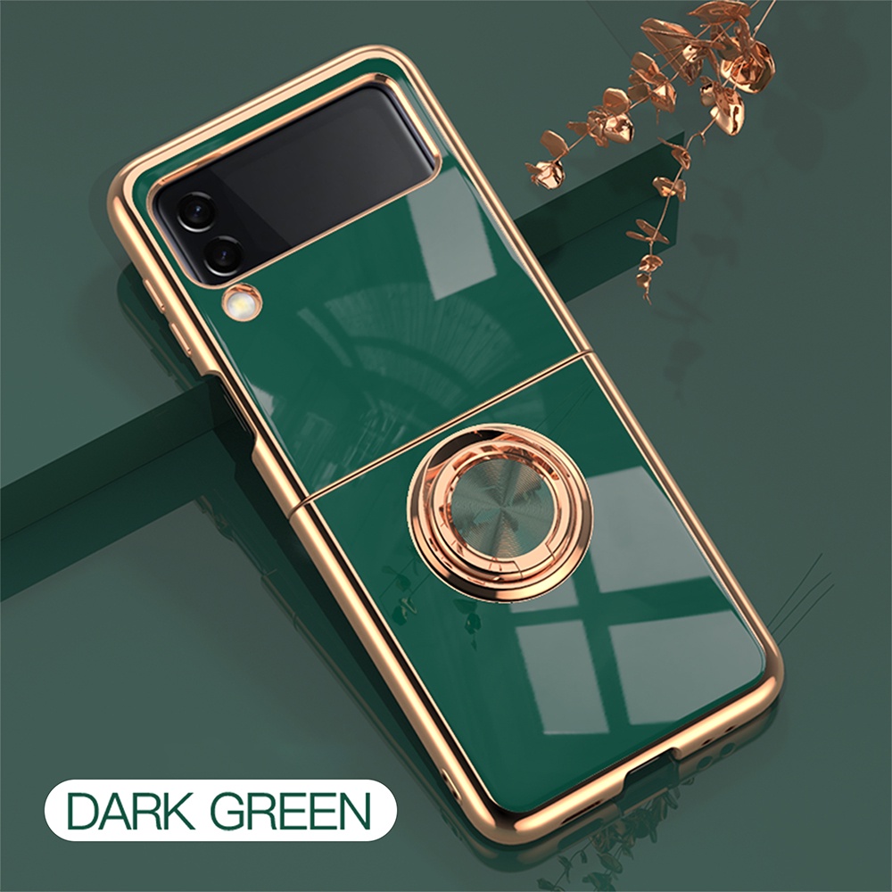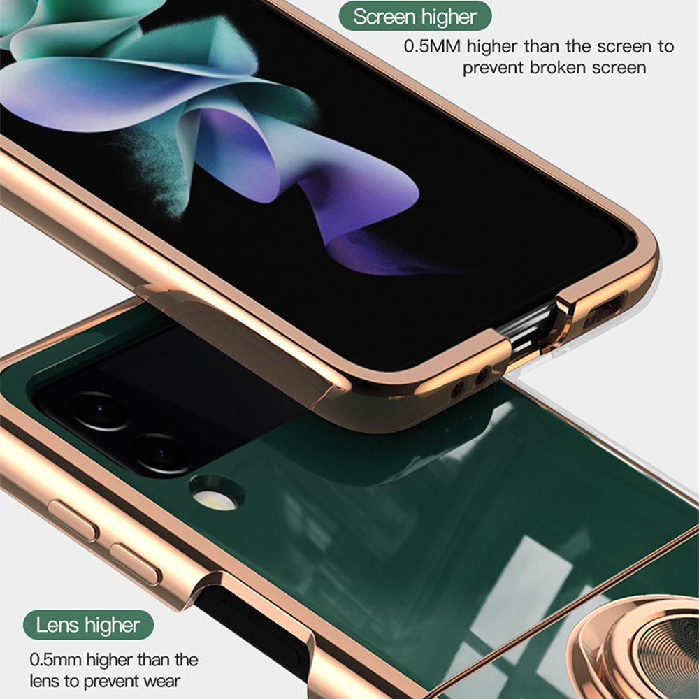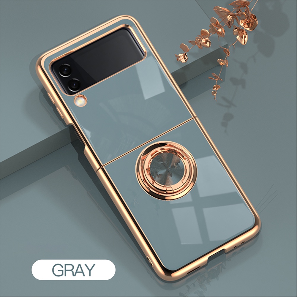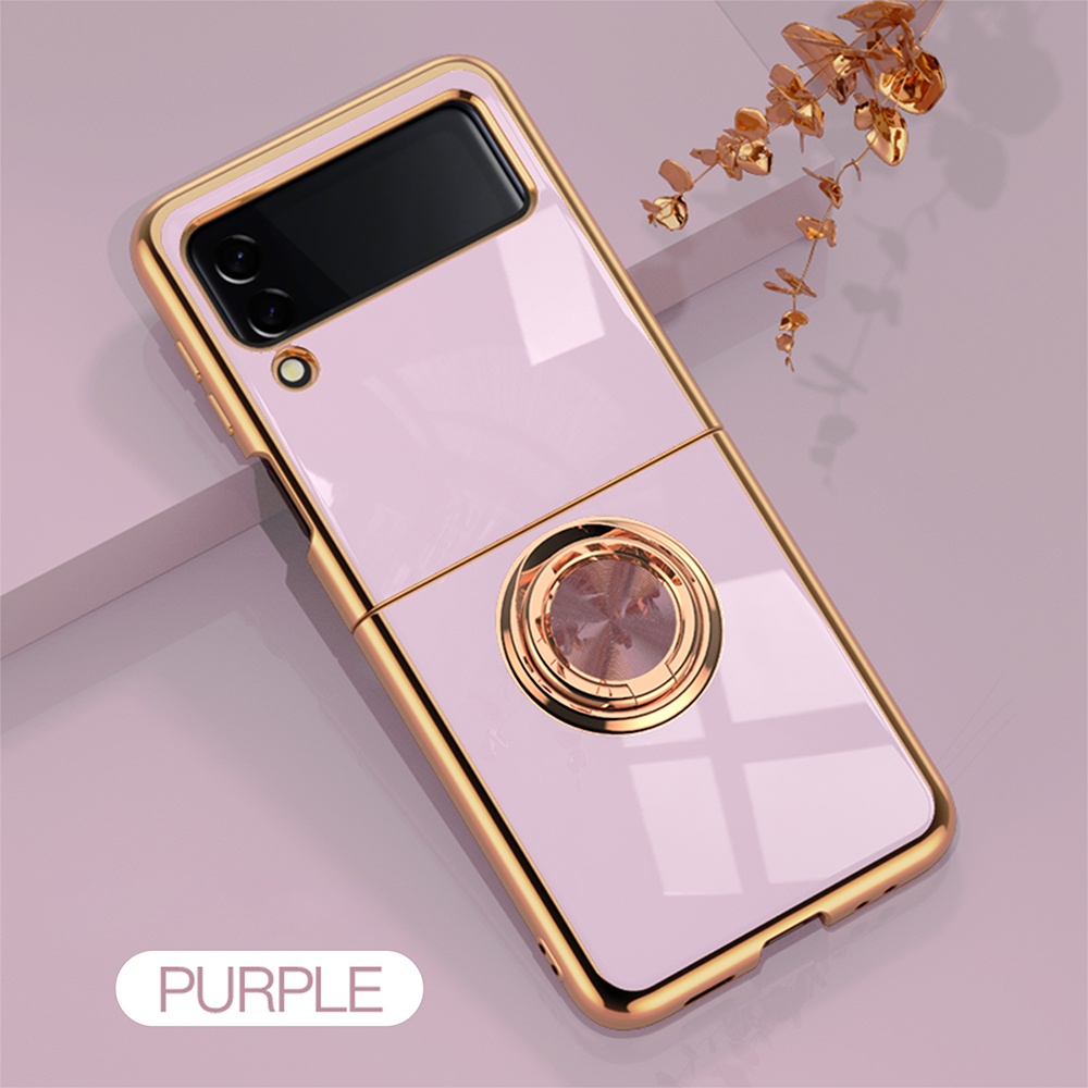 Casing for SAMSUNG Galaxy Z Flip 4 3 Flip 5 Flip5 5G Electroplated Ring Car Magnetic Protective Cover ZFlip3 Zflip4 Phone Case