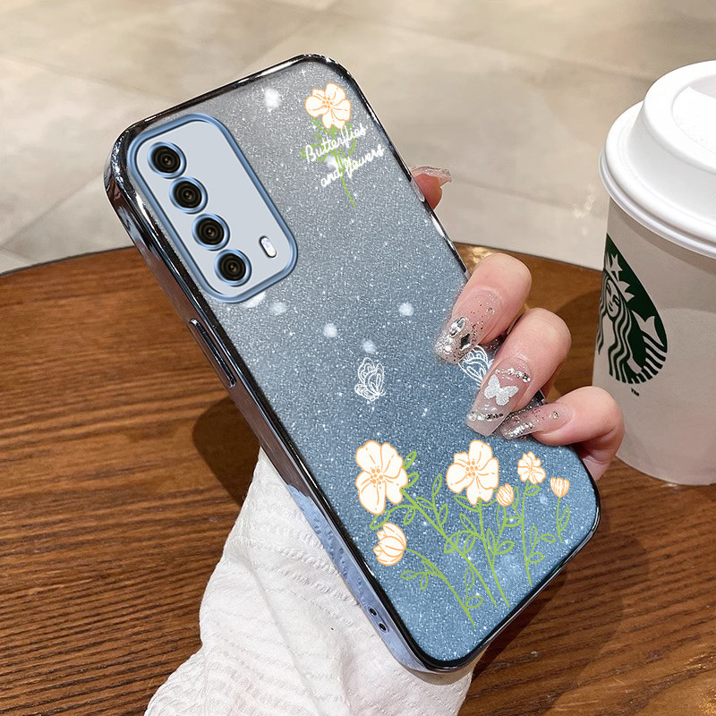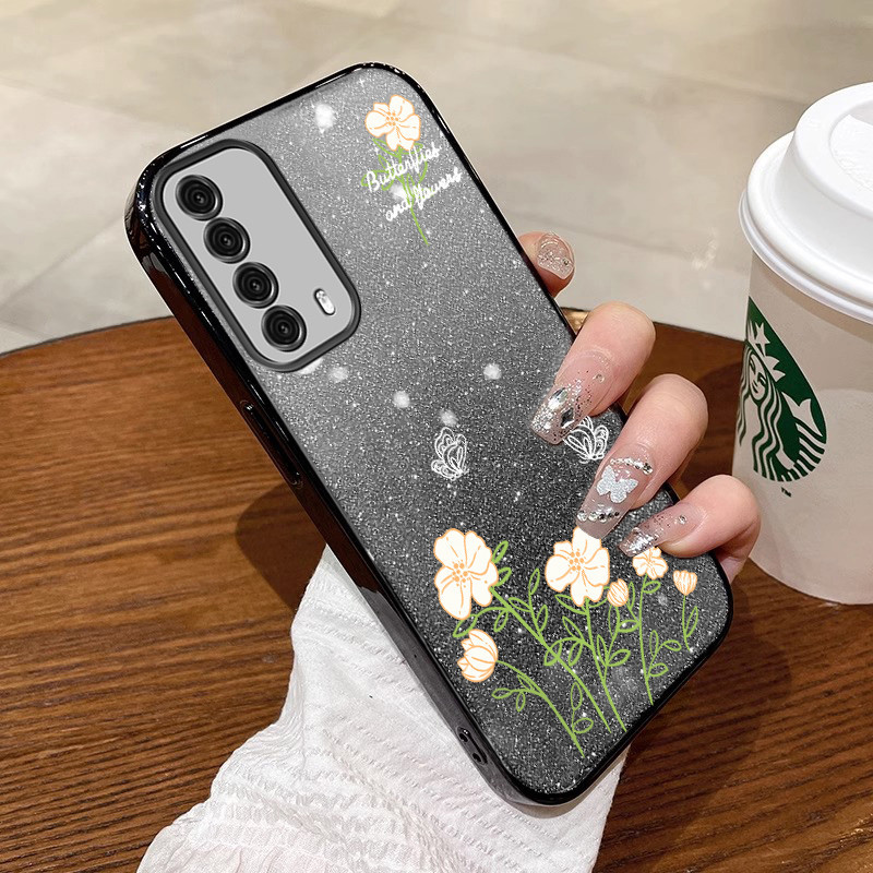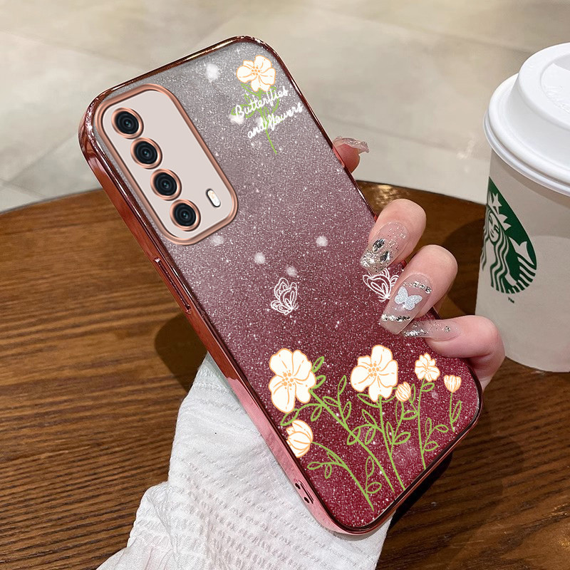 Casing huawei y7a Phone case blooms with beautiful flowers soft golden border shock absorber bumper sfbh01