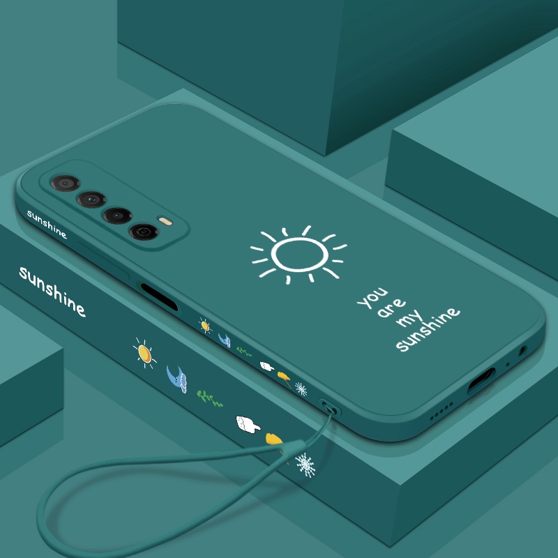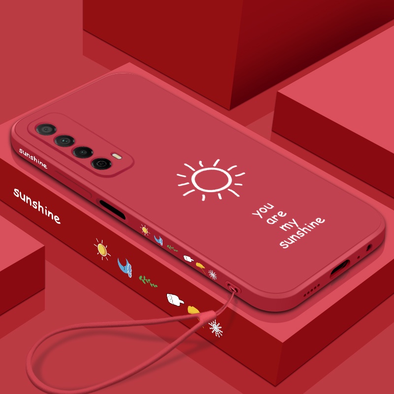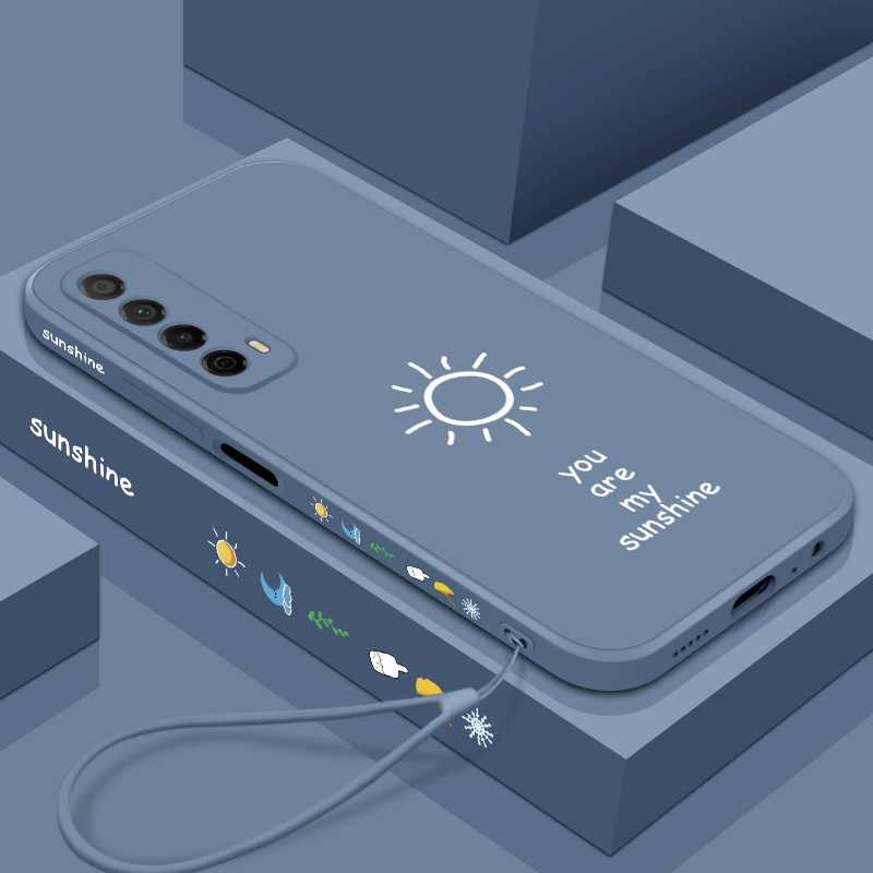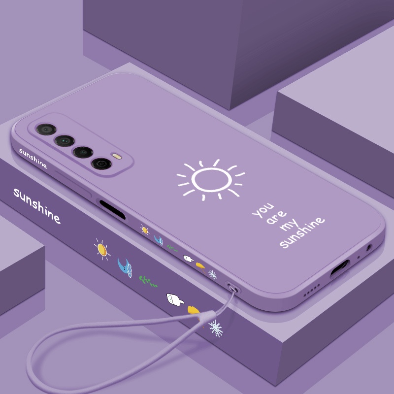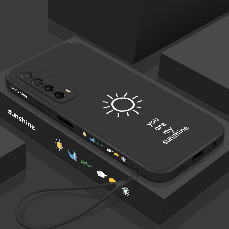Casing huawei y7a p30 lite p20 lite mobile phone case simple little sun SoftCASE silicone straight edge soft shell lanyard phone case for girls boys