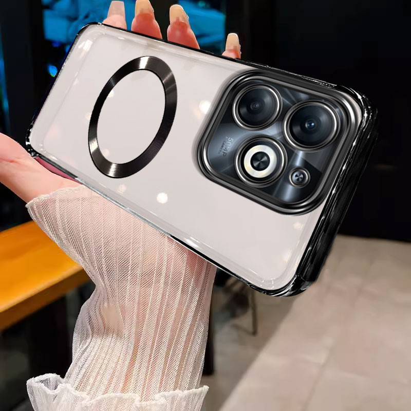 Casing infinix hot 40i infinix hot 40 pro infinix hot 40 Phone case Soft gold border transparent bumper with magnetic suction ring shock absorber protector