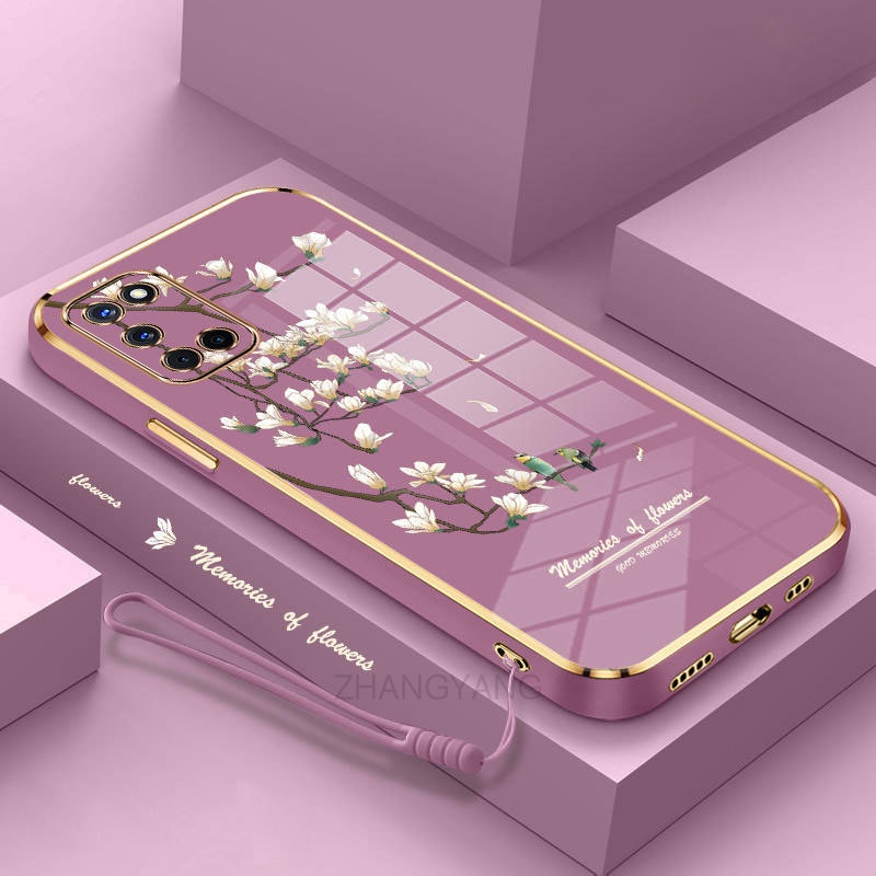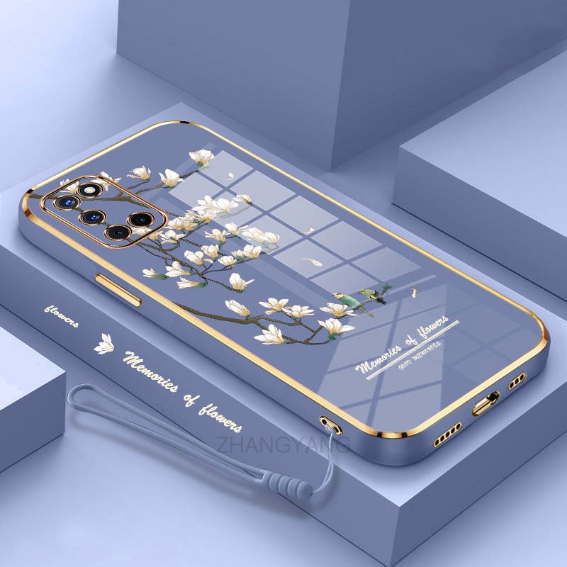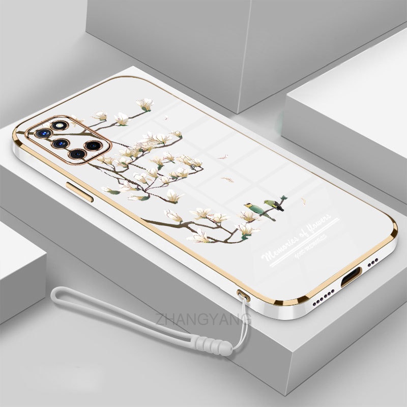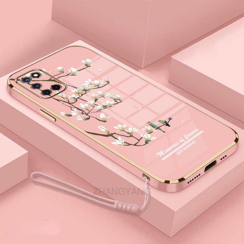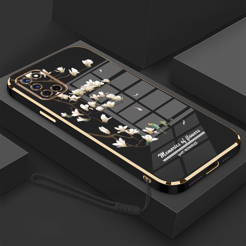 Casing oppo a52 a92 Phone case Electroplated silica gel soft shell white orchid pattern camera full coverage