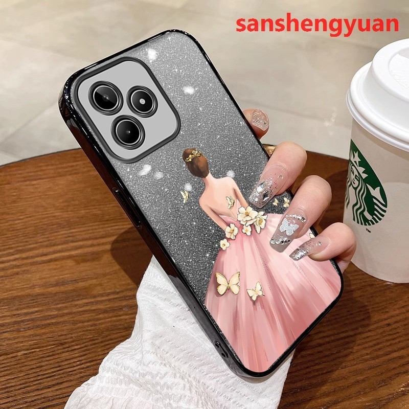 Casing realme C53 REALME C51 phone case features a soft gold edged glossy transparent shock absorber protection bumper SFBYNS