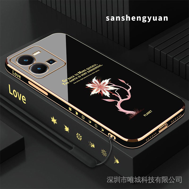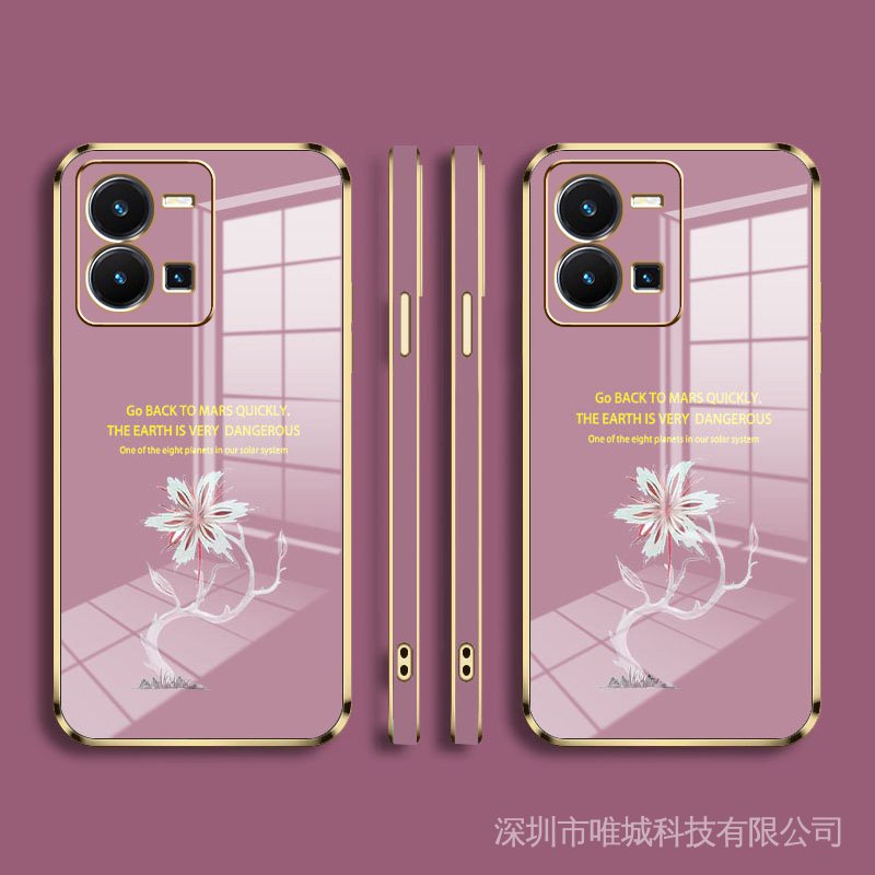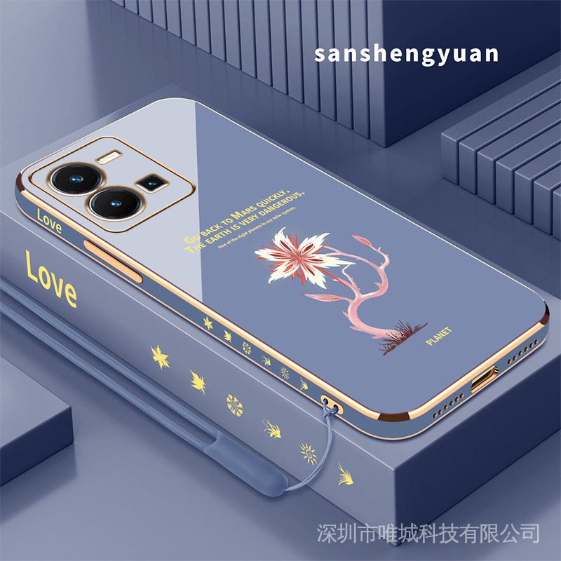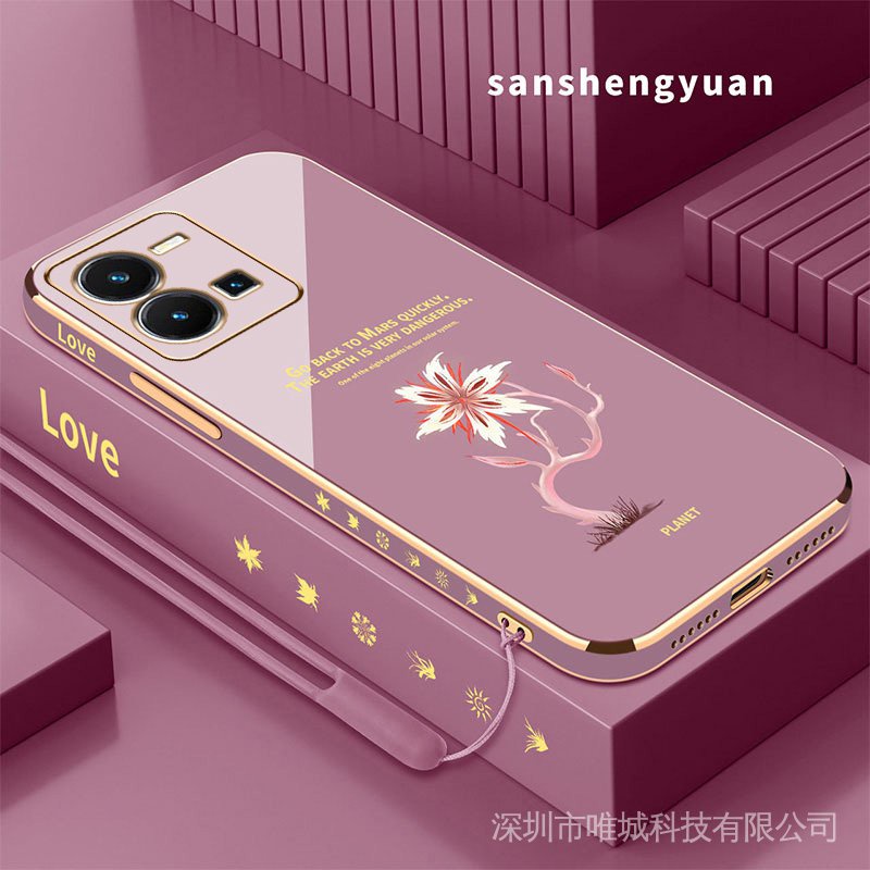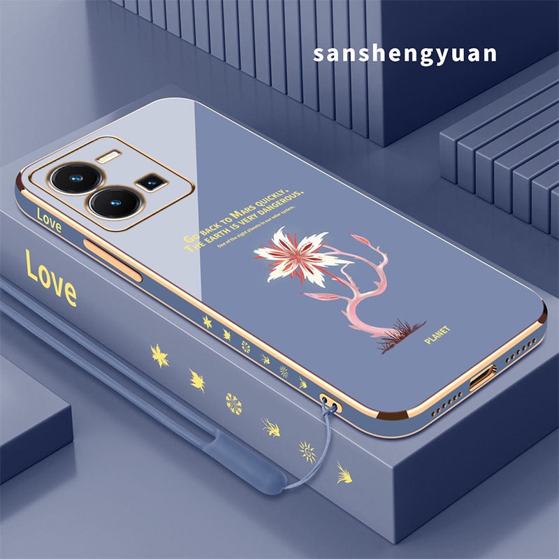 Casing vivo y35 phone case soft silicone cover shockproof electroplated Phnom Penh Acacia flower New design