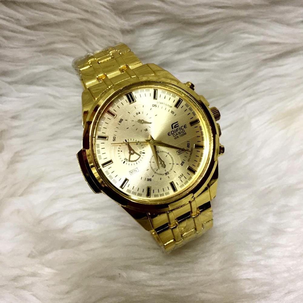 KC High End Edifice 100M Automatic 3 Chronograph Silver Dial Stainless Steel Watch for Men(Gold)