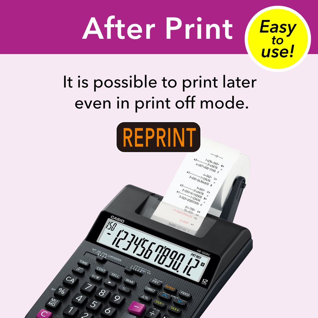 Casio Hr100rc Printing Calculator with Power Adaptor + 4pcs Roll Paper