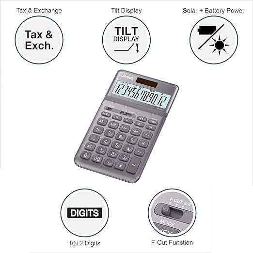Casio JW-200SC-GY Premium & Stylish Calculator (Gray) | Business Calculator (100% Original)
