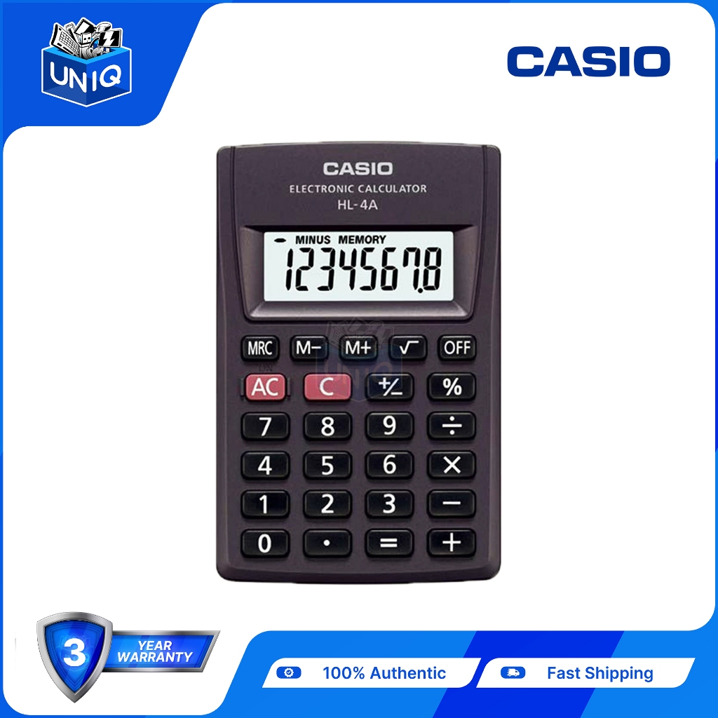 Casio Portable Type 8 digits Calculator HL-4A, Independent Memory, Large Display