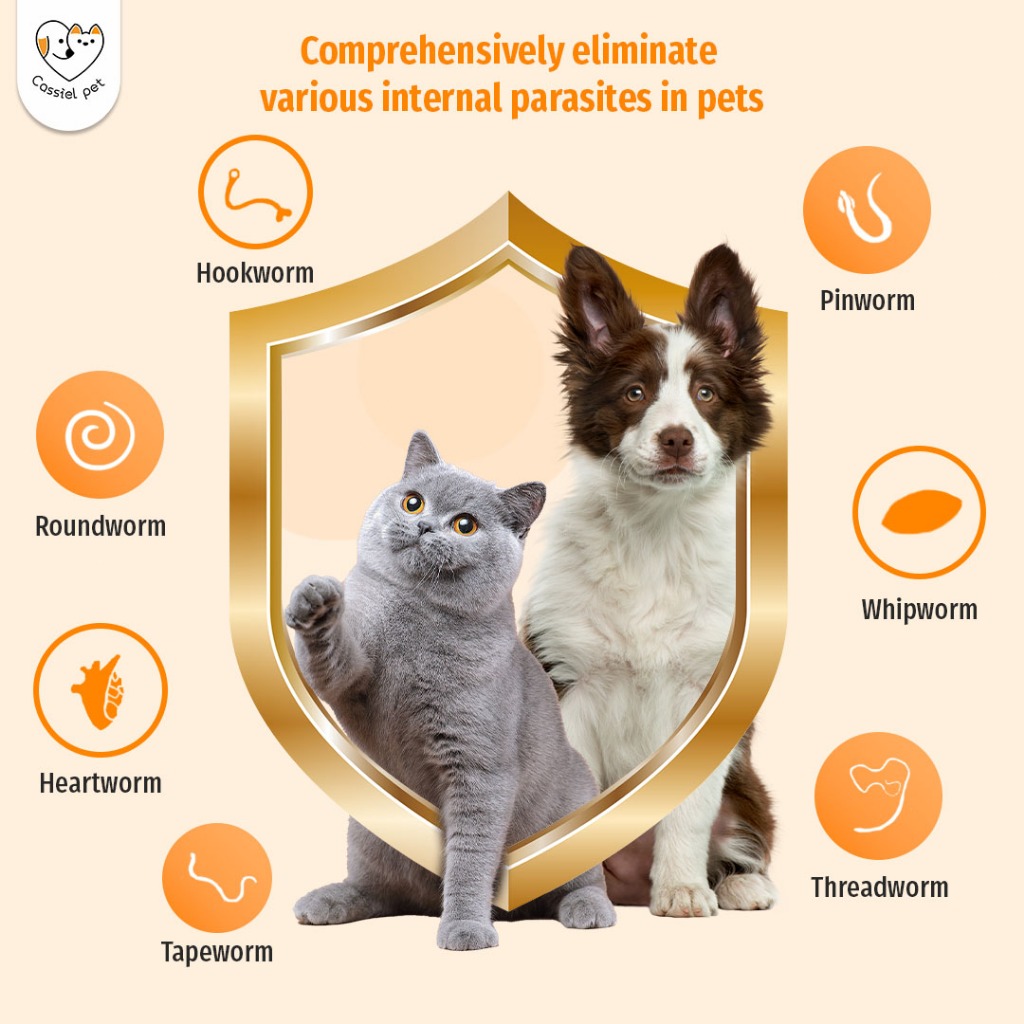 Cassiel Pet Deworming Chewable Tablets For Anti Tick And Flea Heartworm Hookworm For Dogs Cats Puppy