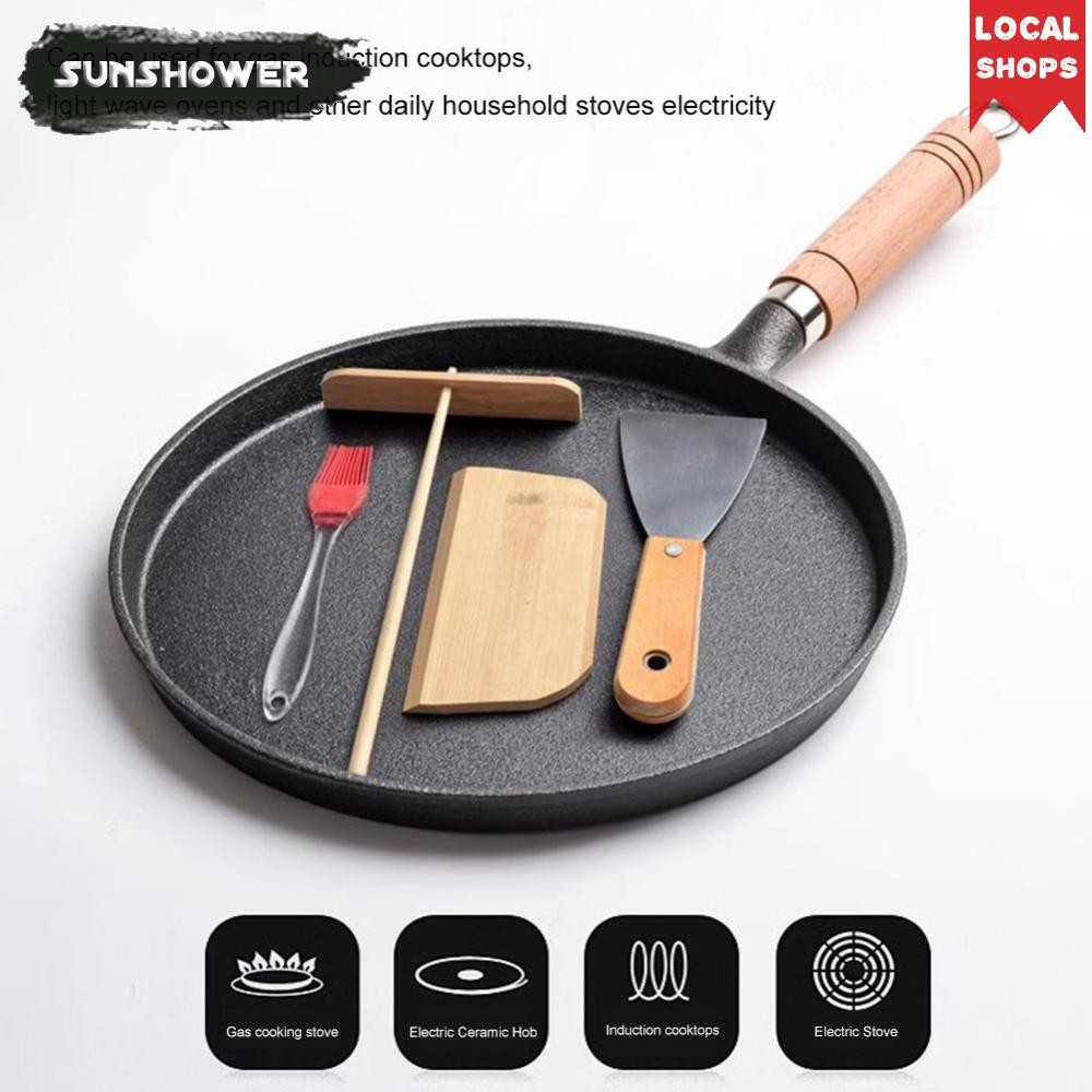 Cast Iron Frying Pan Uncoated Non Stick Flat Bottomed Pan Omelet Steak Pizza Pot