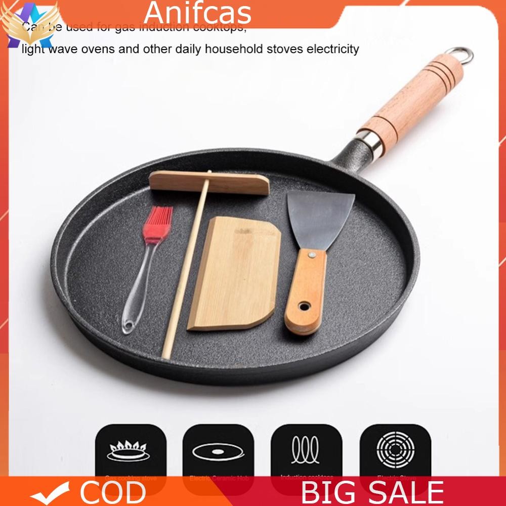 Cast Iron Frying Pan Uncoated Non Stick Flat Bottomed Pan Omelet Steak Pizza Pot