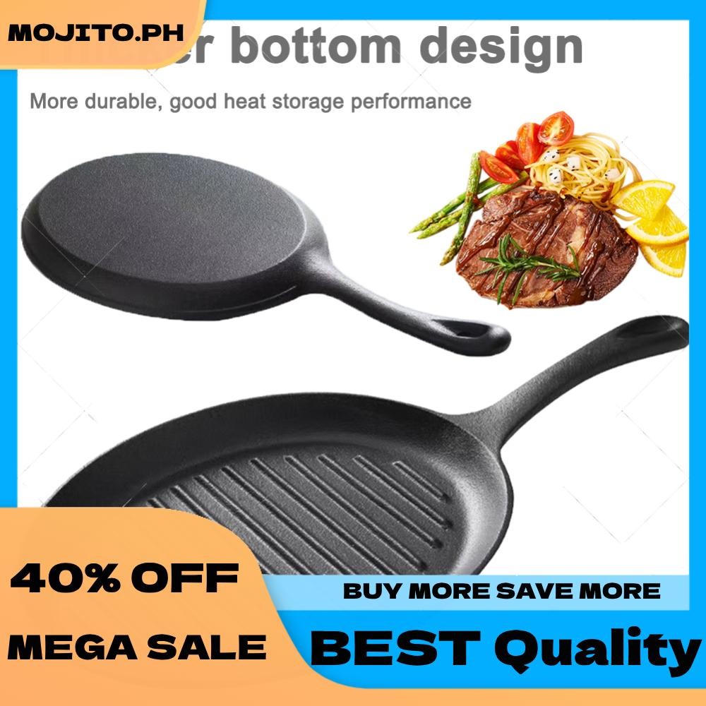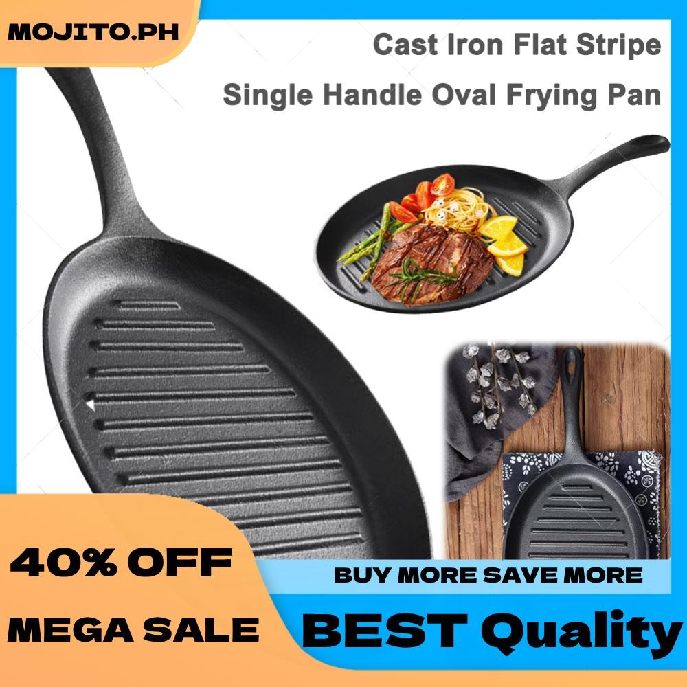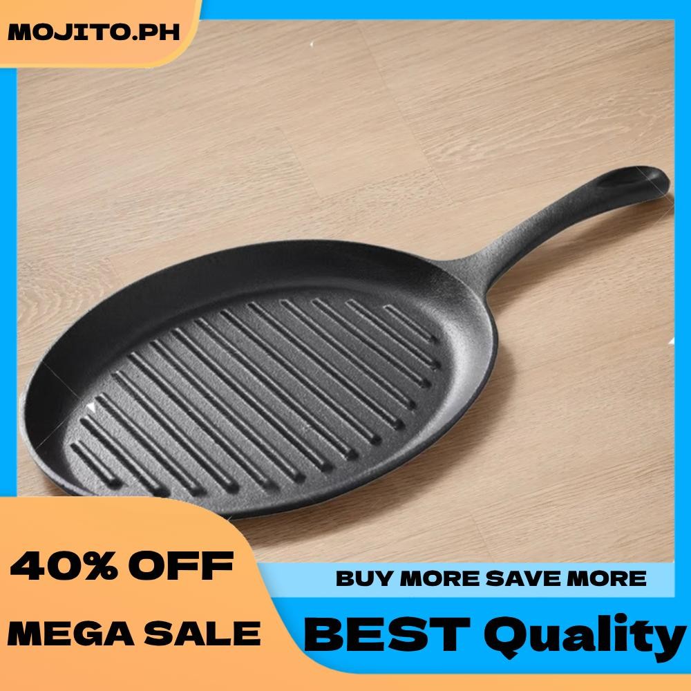 Cast Iron Grill Pan Non-Stick Grill Fry Pan with Handle No Chemical Coating Induction and Gas Stove Ready