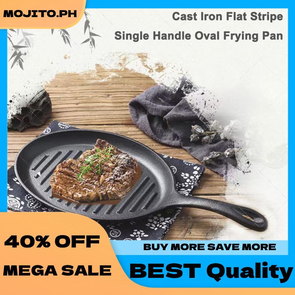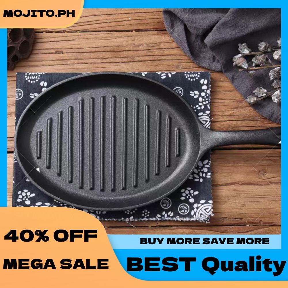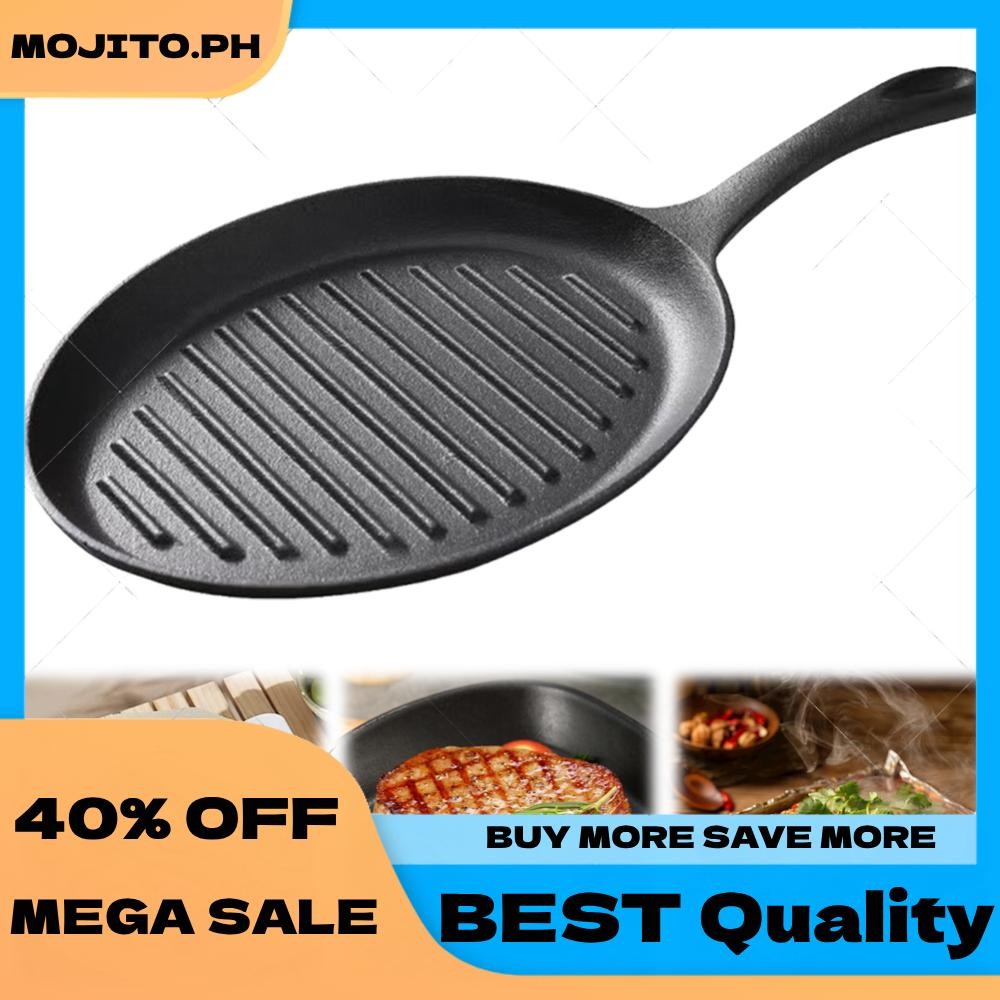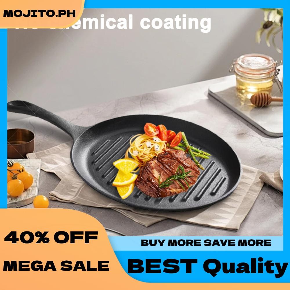 Cast Iron Grill Pan Non-Stick Grill Fry Pan with Handle No Chemical Coating Induction and Gas Stove Ready