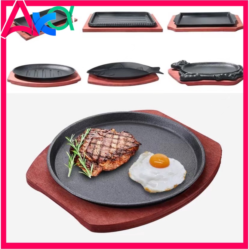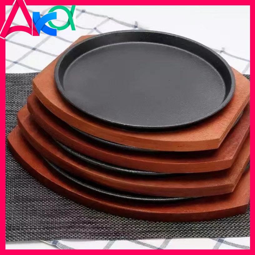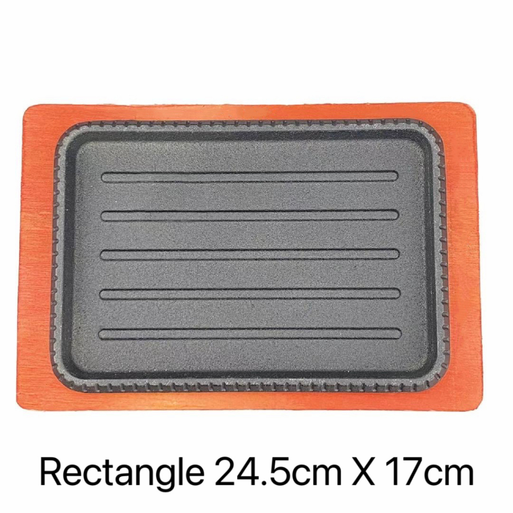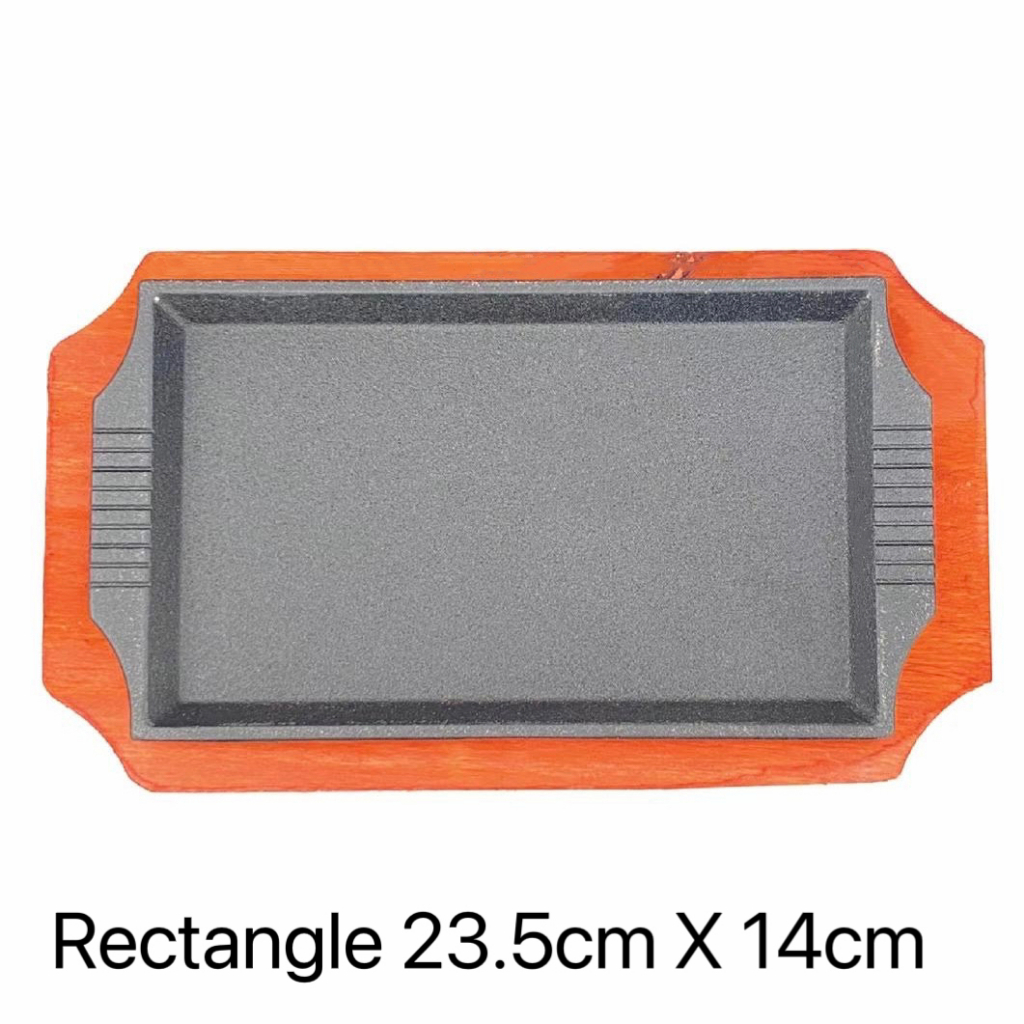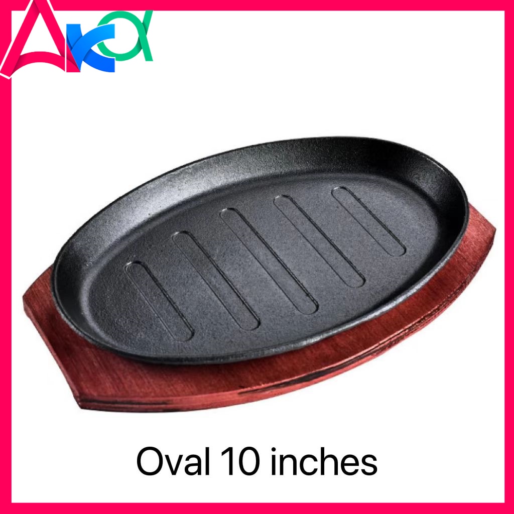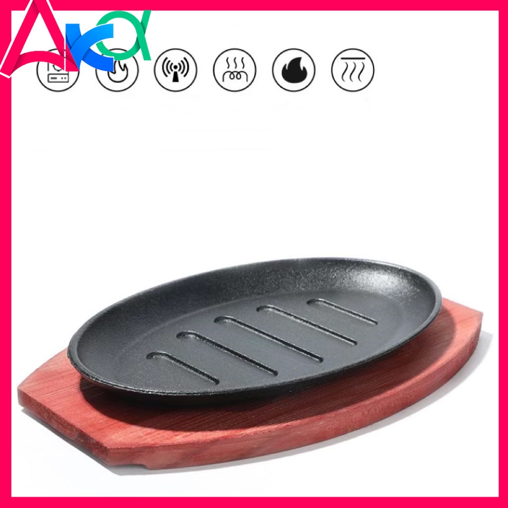 Cast iron sizzling plate non stick sizzling plate set oval sizzling plate with wood base and handle