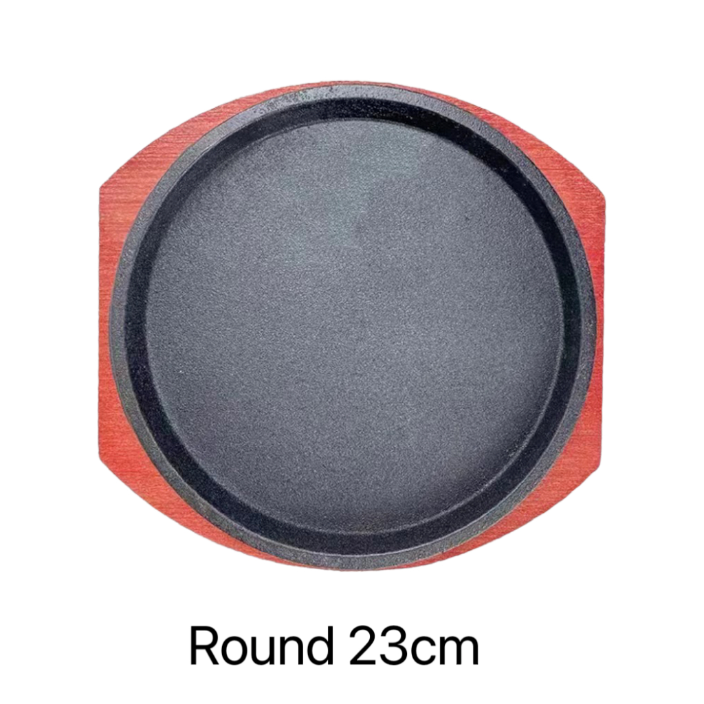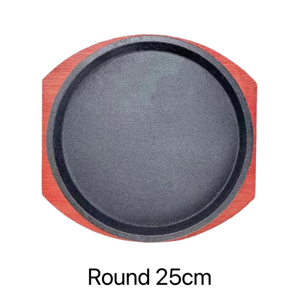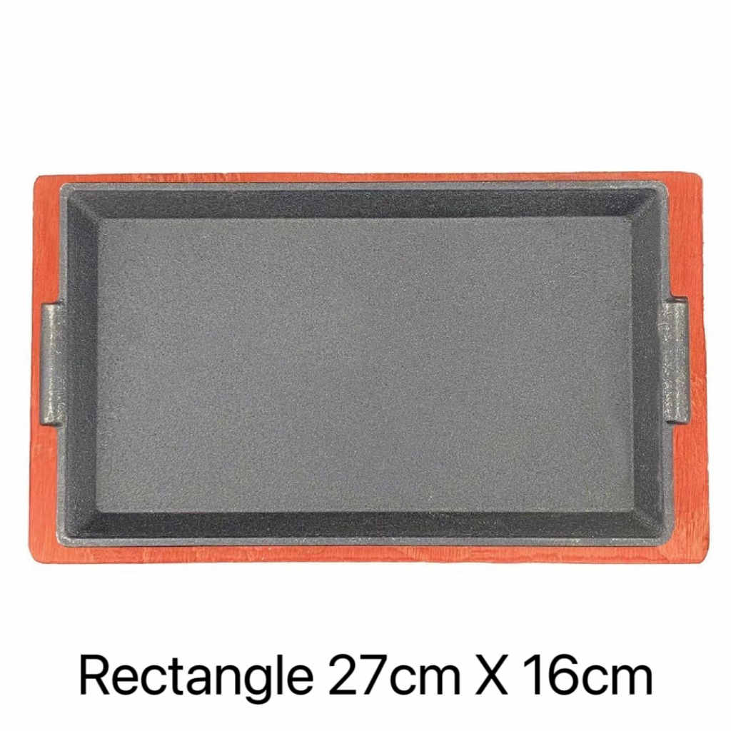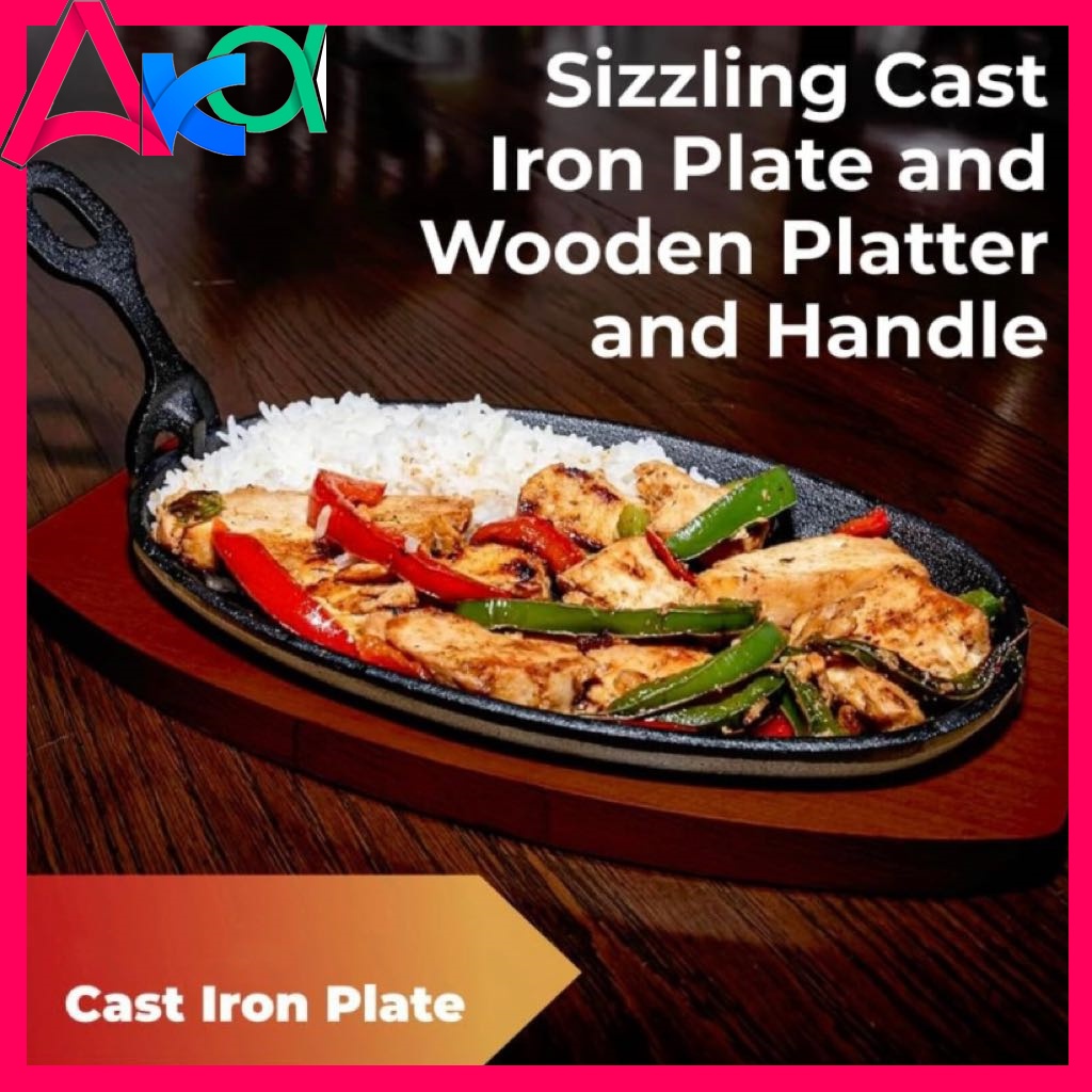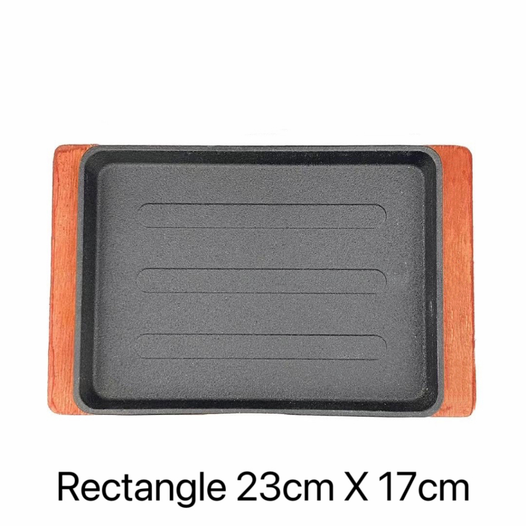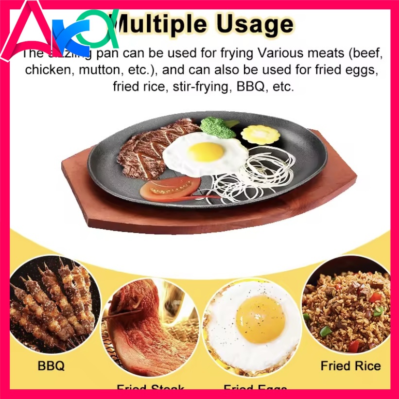 Cast iron sizzling plate non stick sizzling plate set oval sizzling plate with wood base and handle