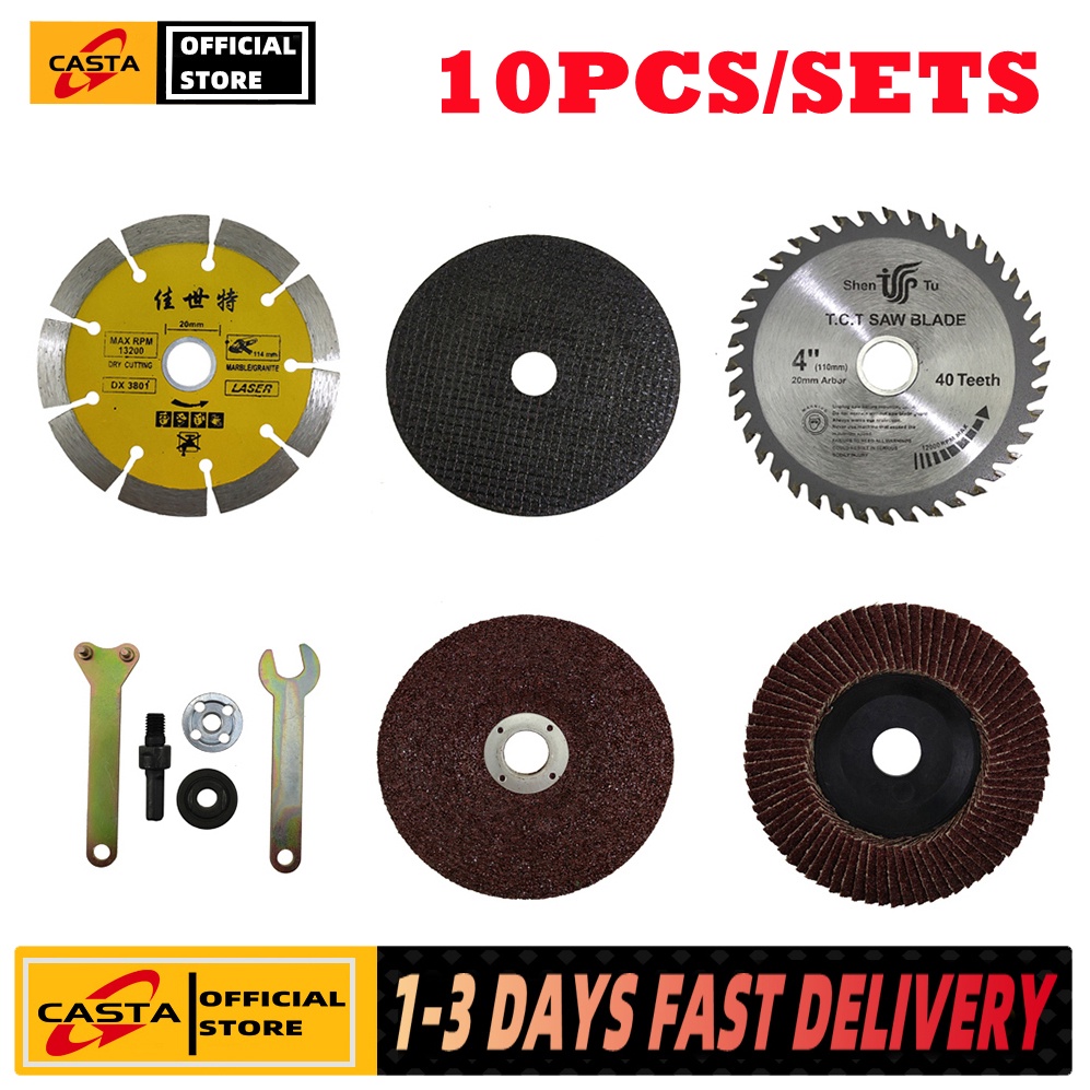Casta 10pcs Electric Drill Variable Angle Grinder Mandrel Adapter Disc Kit Cutting Tool Accessories