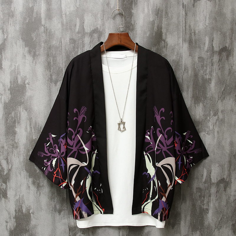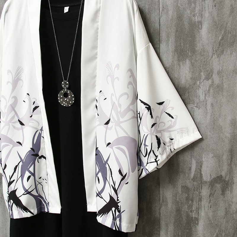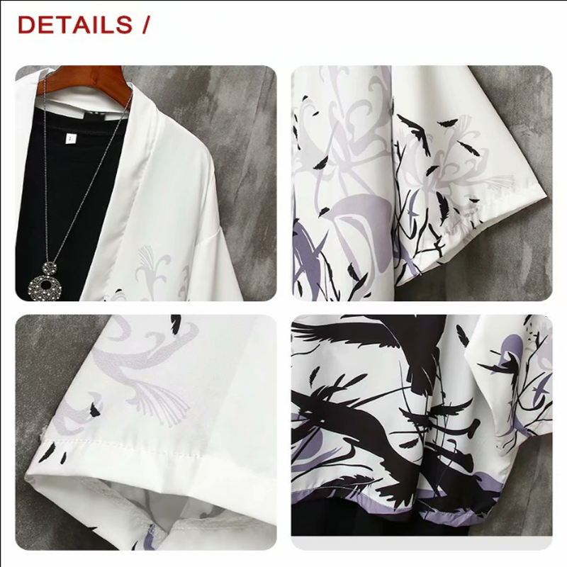 2024 New Summer Men's Seven-sleeved Shirt Loose National Style Breathable Shirt Men's Ancient Style Couple Robe Handsome Colorful Bird Print Young Couple Shirt Kimono Bohemian For Men Incerun Men Fashion